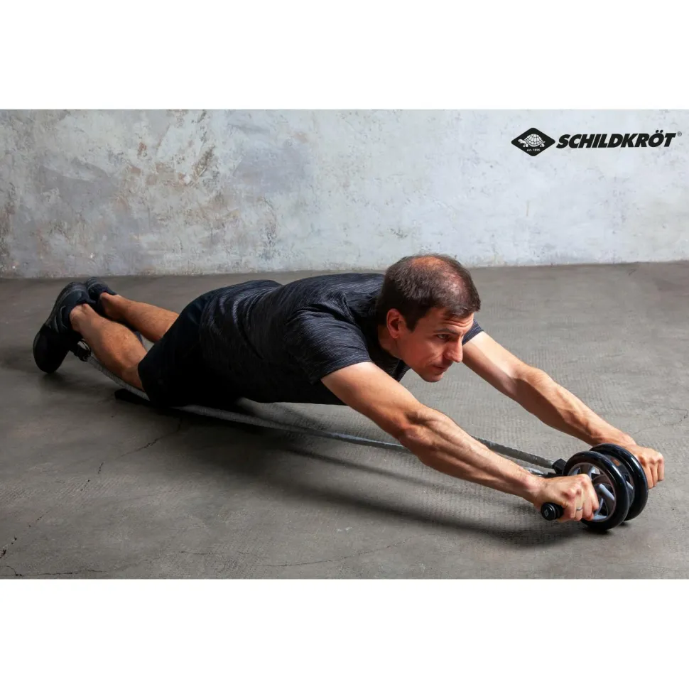 Für das Fitness-Training zu Hause: das Abroller & Expander Set von Schildkröt Fitness. Das Set kommt mit doppelten Laufrädern (Ø 157 mm, Breite 31 mm) und hat rutschfeste, schweißabsorbierende Handgriffe. Zum Set gehören zwei Expander Tubes (65 cm, leichter Widerstand) mit Fußschlaufen. Die Bänder reduzieren den notwendigen Kraftaufwand der Standardübungen und sind eine optimale Ergänzung für Anfänger.