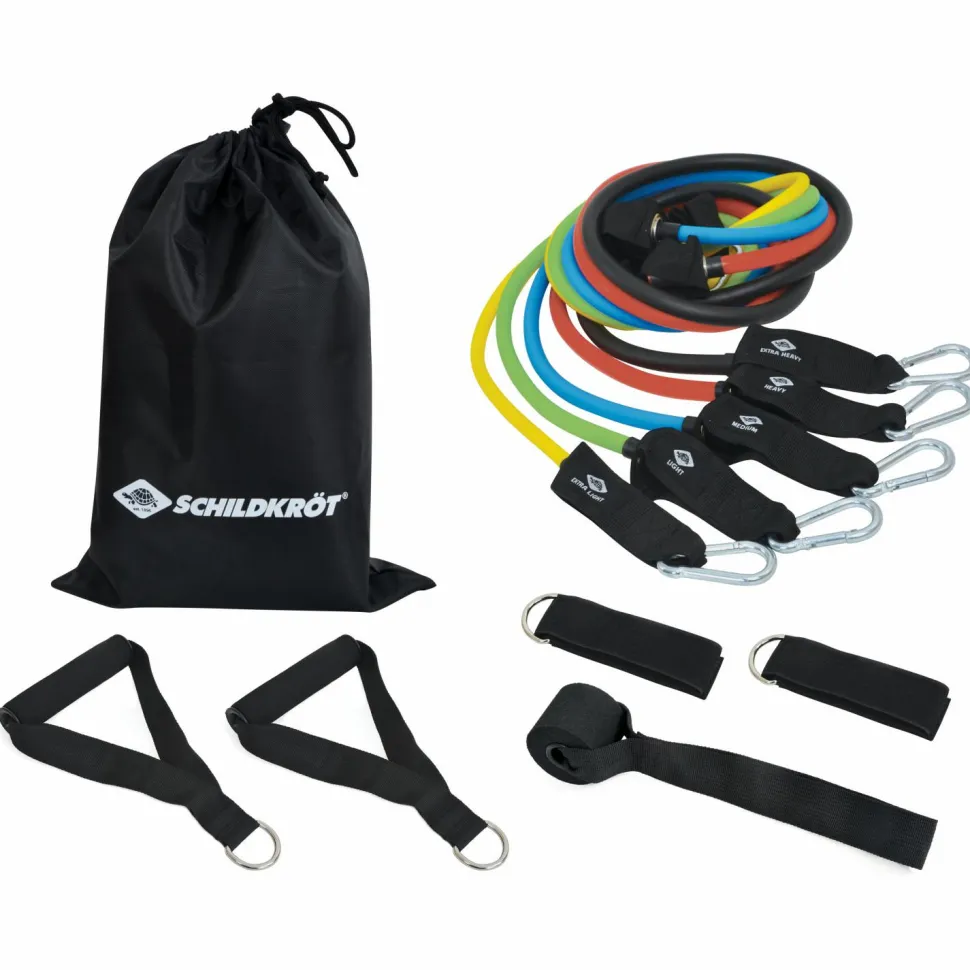 Die Fitnessbänder Expander Resistance Tubes von Schildkröt Fitness ermöglichen ein effektives und abwechslungsreiches Training aller Muskelgruppen. Die fünf verschiedenen Bänder lassen sich vielseitig kombinieren, damit das Training nie langweilig wird und Du immer neue Herausforderungen hast. Das Set ist für Anfänger und Fortgeschrittenen gleichermaßen geeignet. Ideal auch für unterwegs, da man das Trainingstool ganz einfach an der Tür befestigen kann.