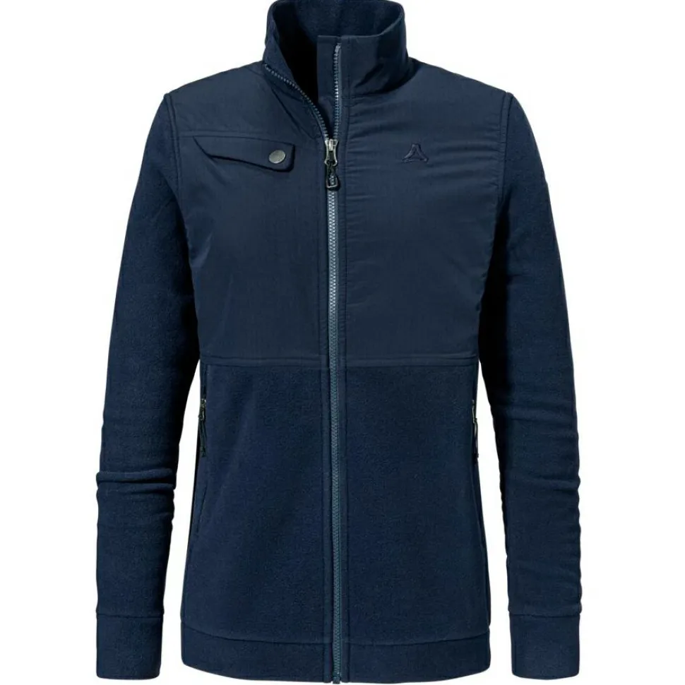 Mit der Women’s Fleece Jacket Style Maghera von Schöffel bist Du für jedes Abenteuer bestens gerüstet. Sie hält Dich angenehm warm und sorgt dank einem hohen Feuchtigkeitstransport für eine schnelle Trocknung. Durch den 2-Wege-Stretch genießt Du volle Bewegungsfreiheit – egal ob beim Wandern, Trekking oder im Alltag. Besonders praktisch, die robusten Besätze an Schulter, Brust und Ärmeln machen die Jacke extrem langlebig. Zwei Reißverschlusstaschen und eine Brusttasche mit Druckknopf bieten Platz für Deine Essentials.