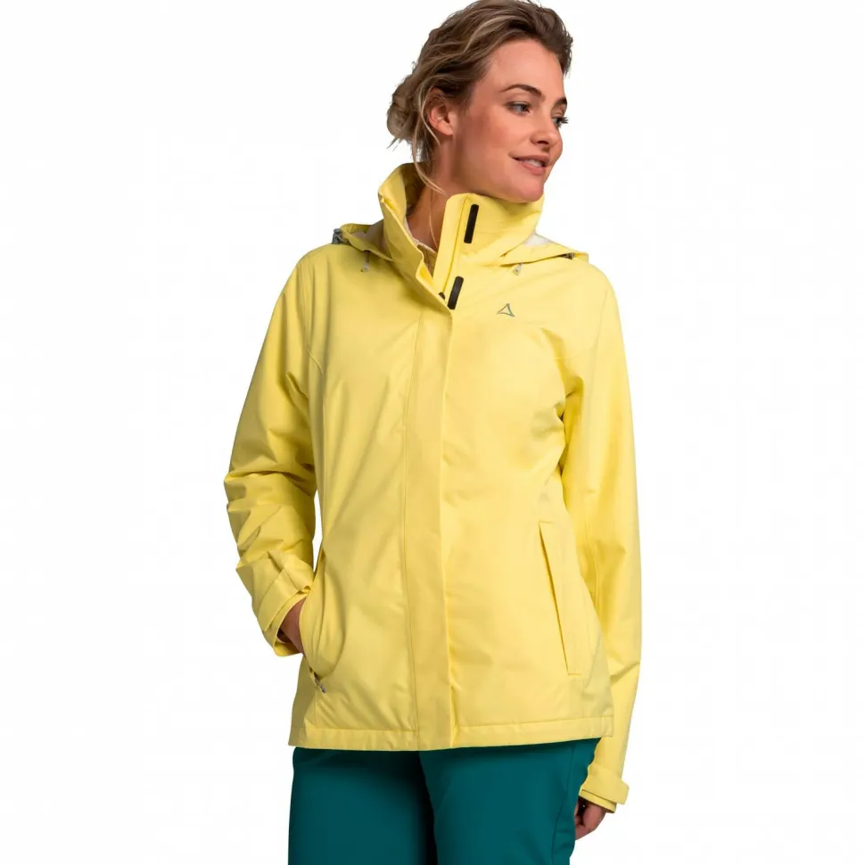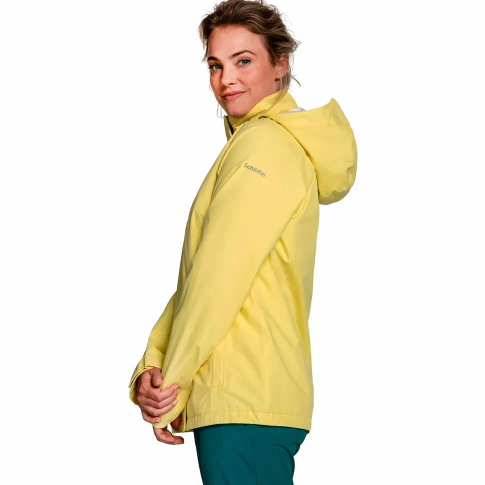 Komfort und Wetterschutz garantiert die Regenjacke Women’s Jacket Gmund von Schöffel! Das zweilagige Schöffel Venturi Material ist wasser- und winddicht, um Dich optimal zu schützen. Zudem ist das Material elastisch, damit Du Dich frei bewegen kannst. Mit der hohen Atmungsaktivität staut sich keinerlei Feuchtigkeit an. Auch bei schweißtreibenden Wandertouren bleibt der trockene Tragekomfort erhalten.
