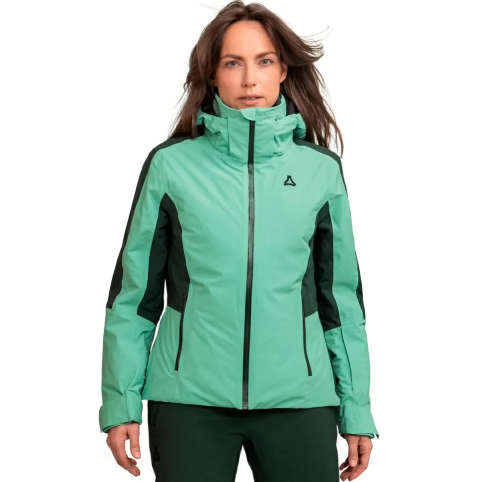 Die Women’s Jacket Trifex von Schöffel ist Dein idealer Begleiter für die Piste. Mit einer Wassersäule von 10.000 mm hält sie Dich trocken, egal ob es regnet oder schneit. Die Atmungsaktivität von 10.000 g/m²/24h sorgt dafür, dass Du auch bei intensiven Abfahrten ein angenehmes Tragegefühl behältst. Die verstellbare Kapuze und der Kinnschutz am Reißverschluss bieten zusätzlichen Schutz vor Wind, während elastische Innenbündchen und Klettverschlüsse an den Ärmeln das Eindringen von Schnee verhindern. Der Schneefang ist besonders praktisch bei Tiefschneeabenteuern.