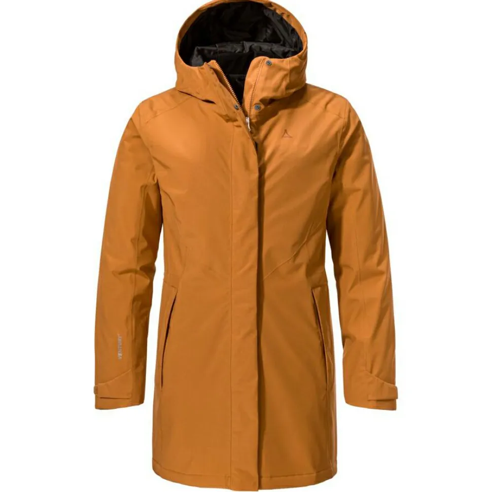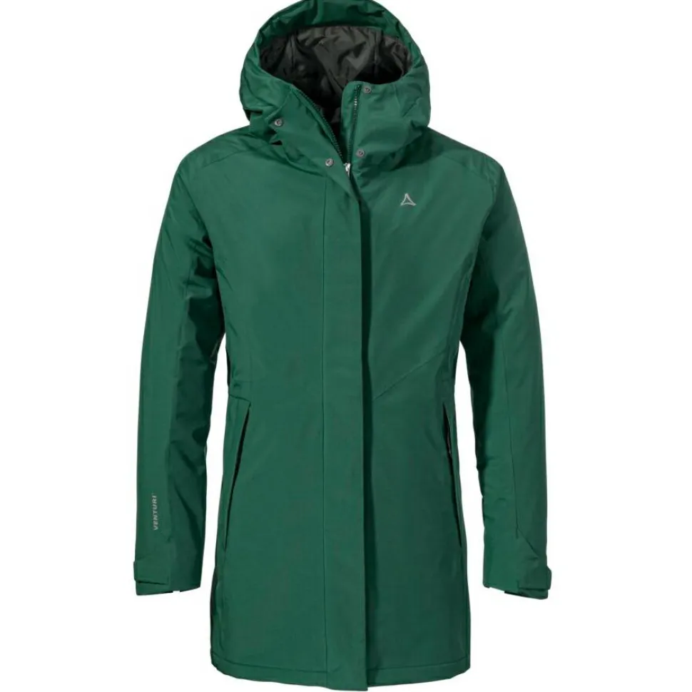 Der Women’s Parka Froda Mantel von Schöffel sieht nicht nur gut aus, sondern ist auch hochfunktional!Mit der Wassersäule von 10 000 mm ist er wasserdicht und dennoch atmungsaktiv. Das heißt, Du kommst auch nicht in Schwitzen, wenn Du mit dem Fahrrad in der Stadt fährst oder ihn zum Wandern trägst.Die kuschelige Kapuze und der hohen Stehkragen können Wind und Wetter trotzen. Auch der Reißverschluss ist mit einer Windabdeckleiste geschützt, die Du mit einer zusätzlichen Knopfleiste fixieren kannst. Somit hat die Kälte keine Chance auf ein Eindringen!Zu Deiner Sicherheit ist der Women’s Parka Froda mit reflektierenden Details an den Ärmeln ausgestattet, sodass Du auch in der Dämmerung im Straßenverkehr gut sichtbar bist.