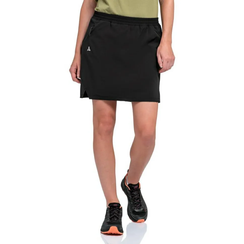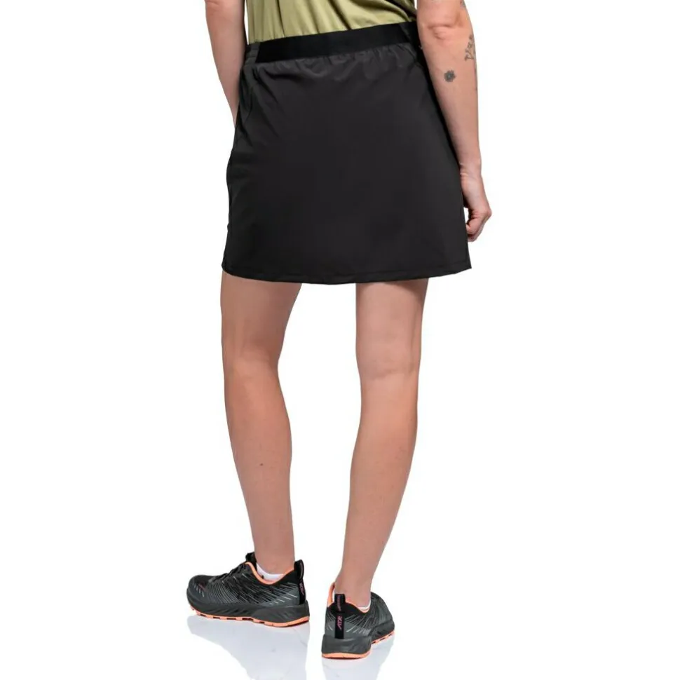 Flexibel einsetzbar ist der Rock women’s Skirt Style Blaueis von Schöffel! Sein Materialmix ist angenehm luftig und leitet Feuchtigkeit schnell ab, sodass Du immer einen trockenen Tragekomfort hast. Mit dem elastischen Anteil im Material hast Du eine gute Bewegungsfreiheit. Die Innenhose optimiert die Passform und bedeckt alles sicher. An der Seite findest Du noch eine kleine Tasche. Ideal zum Wandern und für Reisen!
