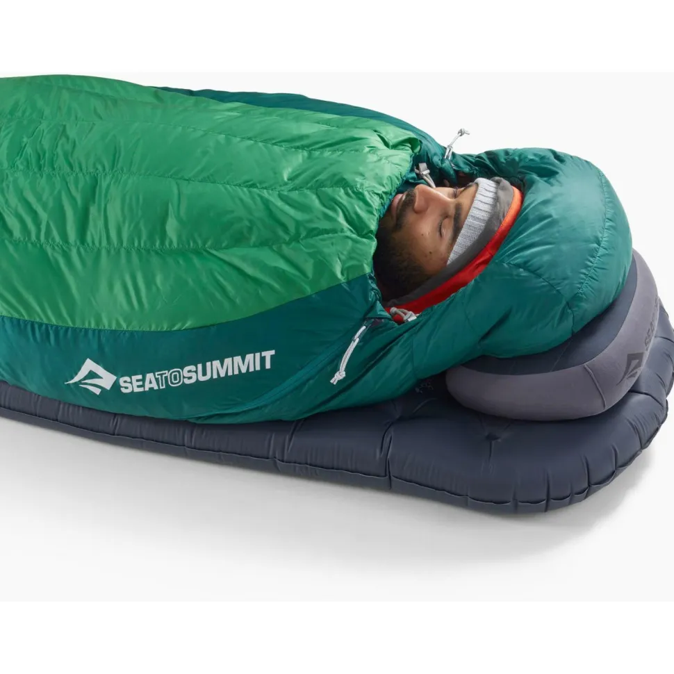 Mit dem Ascent -9°- Daunenschlafsack kommen die Outdoor-Spezialisten von Sea to Summit der vielbesungenen eierlegenden Wollmilchsau unter den Schlafsäcken ganz schön nahe! Mit einem unteren Limit von -9°Celsius und einer Komforttemperatur von -2°C eignet sich der Schlafsack sicher eher für den (mitteleuropäischen) Winter und insgesamt den kühleren Teil des Jahres. Der recht geräumige Mumien-Schnitt lässt Dich einerseits komfortabel schlafen, bietet andererseits aber auch stets genügend Isolationsleistung, damit Dir nicht frisch wird. In das Kapuzenteil des Schlafsacks passt außerdem ein Sea to Summit-Kissen (in der Größe Regular). Darüber hinaus ist der Ascent -9° mit anderen Schlafsäcken und Quilts von Sea to Summit koppelbar.