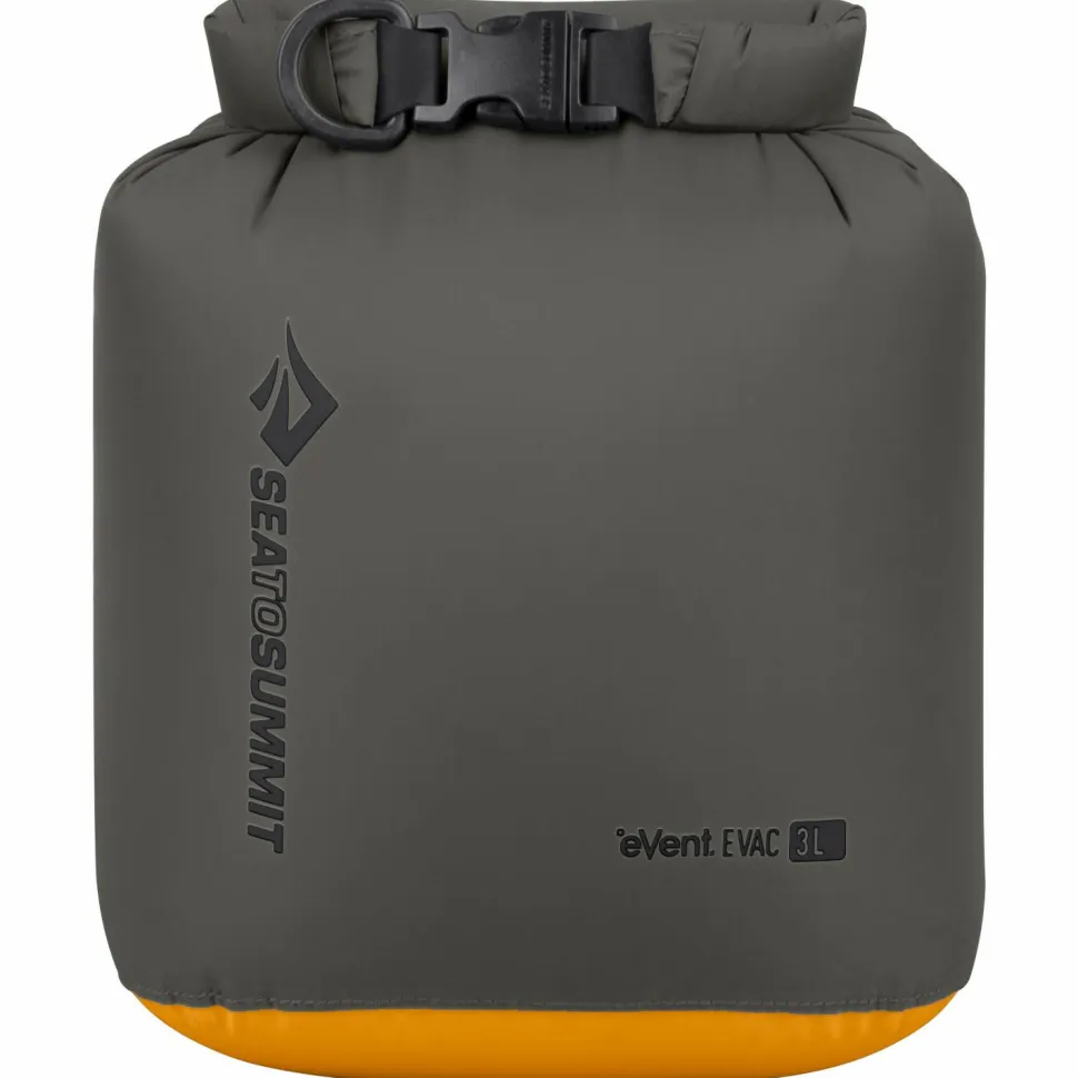 Der Evac Dry Bag von Sea to Summit ist ein klassischer, leichter Packsack mit speziellem eVent-Boden. Er hält deine Ausrüstung trocken und je nach Wunsch komprimiert – Luft kann herausgedrückt werden, Wasser kann jedoch nicht eindringen. An den Seiten kommt recyceltes 70D-Nylongewebe mit PFC-freier C0-Imprägnierung zum Einsatz, am Boden das PFC-freie 70D eVent-Material. Die Nähte des Evac Dry Bag sind doppelt genäht, vollständig verklebt und somit wasserdicht. Auch der Hypalon-Rollverschluss mit Field-Repair-Schnalle dichtet den Beutelinhalt zuverlässig ab. Last but not least lässt sich der Evac Packsack durch seine ovale Form auch leicht stapeln.