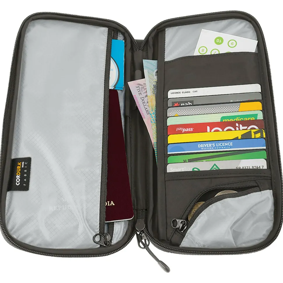 Alles sicher und geordnet unterwegs: mit dem Travel Wallet RFID Wertsachenbeutel von Sea to Summit! Die Wertsachenhülle bringt die leichte und RFID-sichere Art, beim Reisen organisiert zu sein! Ihr feines, leichtes und dennoch sehr robustes 30D Cordura Gewebe ist silikonisiert und mit einer Kupfer-Nickel-Schicht versehen. So können potentielle Diebe keine Daten von deinen Karten auslesen. In Größe small bietet die hochwertige Hülle vier Kartenfächer, zwei größere Fächer für Geldscheine und ein Münzfach. In medium kommen drei weitere Kartenfächer und ein Stifthalter hinzu, in large nochmals ein weiteres Kartenfach.
