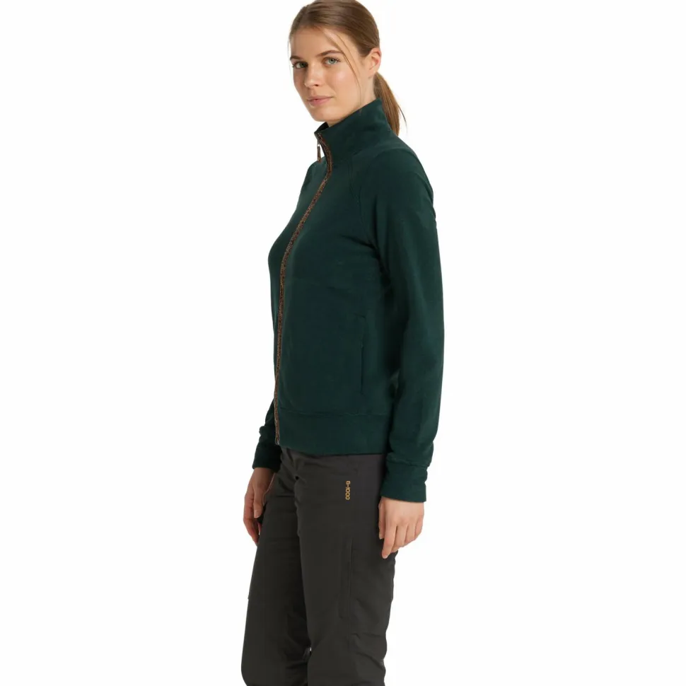 Die Women’s Rolpa Jacket von Sherpa ist schlicht und auf beiden Seiten des Reißverschlusses mit einer schönen Borte verziert. Die Fleecejacke eignet sich als mittlere Bekleidungsschicht, macht aber auch solo eine gute Figur. Das weiche Material bietet ein höchstes Maß an Tragekomfort und Funktion. Entstandene Körperfeuchtigkeit wird nach außen abgegeben, damit der Körper auch bei schweißtreibenden Unternehmungen trocken bleibt und nicht auskühlt.