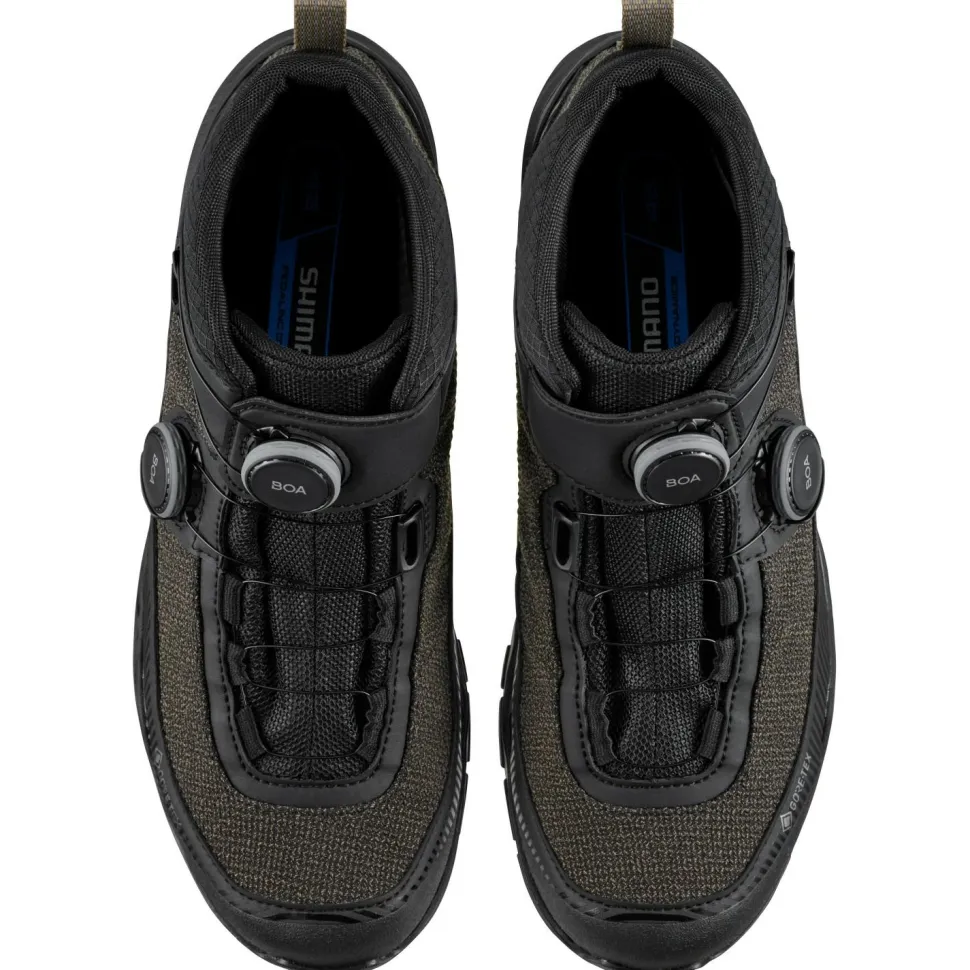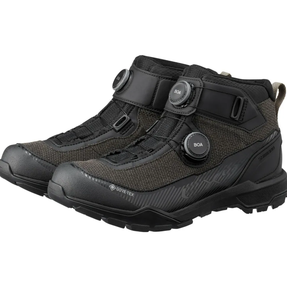 Der EX900 von Shimanos ist die ideale Wahl für alle leidenschaftlichen Tourenfahrer und tägliche Pendler! Du kannst den Schuh mit dem SPD-Klickpedalsystem nutzen, um einen runderen Tritt und eine verbesserte Kraftübertragung zu erreichen. Der SPD-Cleat kann dabei -mit etwas Spielraum- im Mittelfußbereich platziert werden, was komfortables Pedalieren ermöglicht. Die kräftig profilierte Sohle bietet Dir -vor allem im etwas verbreiterten Vorfuß- sehr gute Traktion beim Gehen, wobei die seitlichen Stollen den Metall-Cleat etwas schützen. Das luftig-leichte, selbstverständlich atmungsaktive Obermaterial sorgt für hohen Tragekomfort und gutes Feuchtigkeitsmanagement, und die bewährte GORE-TEX-Membran macht das Ganze wasser- und winddicht, sodass Dir auch ungemütliche Witterungsbedingungen den Spaß auf dem Rad nicht verderben können.