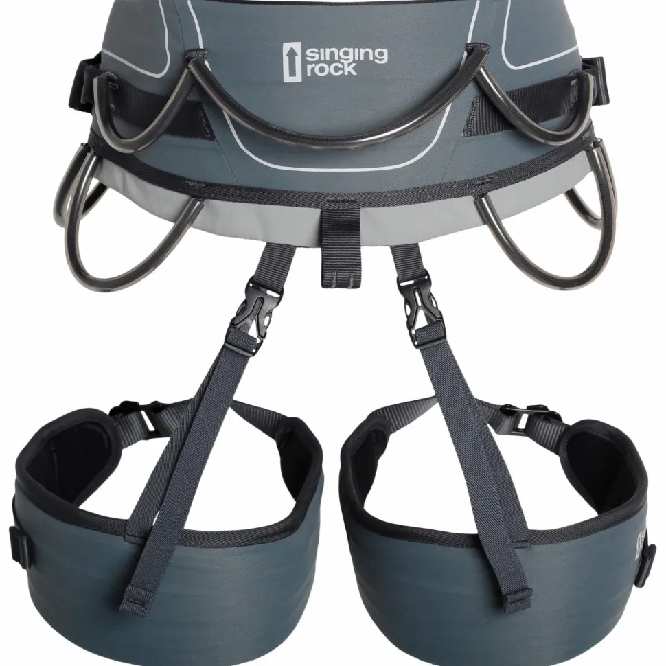 Für alle Big Wall Kletterer, die viel Equipment am Gurt befestigen müssen, ist der Sitzgurt Dome von Singing Rock genau das richtige. Mit seinen sieben Materialschlaufen in zwei Reihen bietet Dir der Klettergurt reichlich Platz, um alles zu befestigen, was mit soll. Der Hüftgurt ist besonders breit und sorgt damit den ganzen Tag über für einen richtig guten Tragekomfort – nicht zuletzt, weil die Polster an Beinen und Hüfte ergonomisch geformt sind. Durch sein 4-Schnallensystem mit Rock&Lock-Schnallen ist der Gurt außerdem an Beinen und Hüfte ganz easy einzustellen und nachzujustieren. Selbstverständlich hat der Sitzgurt Dome auch eine Nachziehschlaufe.