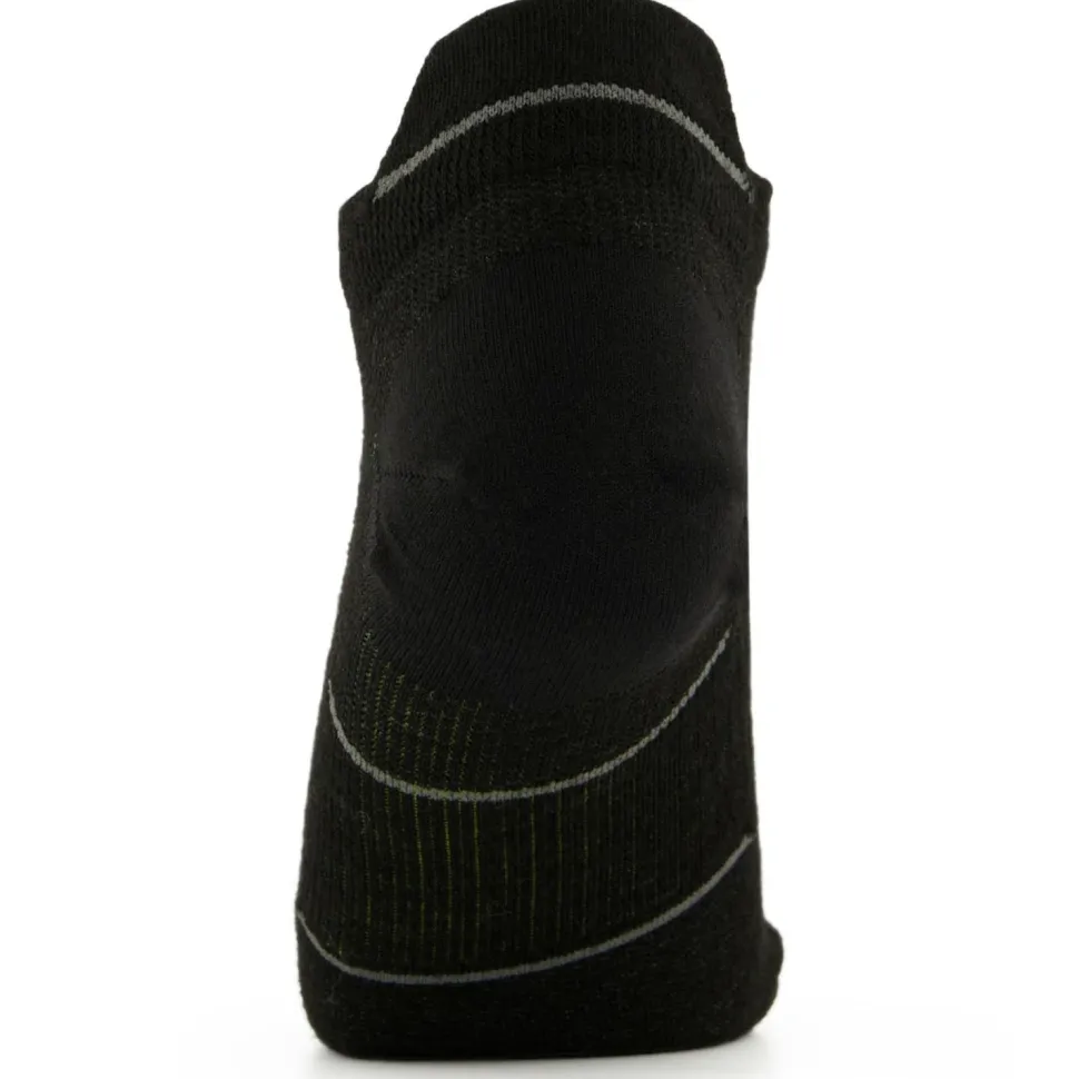 Nahtlose Merinosocken für Läufer – die Performance Run Zero Cushion Low Ankle von Smartwool sind atmungsaktive Begleiter für intensive Trainings. Das leichte Gewebe aus Merinowolle und recyceltem Polyamid schmiegt sich optimal an den Fuß an. Mesh-Zonen erhöhen zusätzlich die Ventilation und lassen Feuchtigkeit extrem schnell nach außen gelangen. Die Merinowolle reguliert auf natürliche Weise das Klima und das Entstehen von unangenehmen Gerüchen.