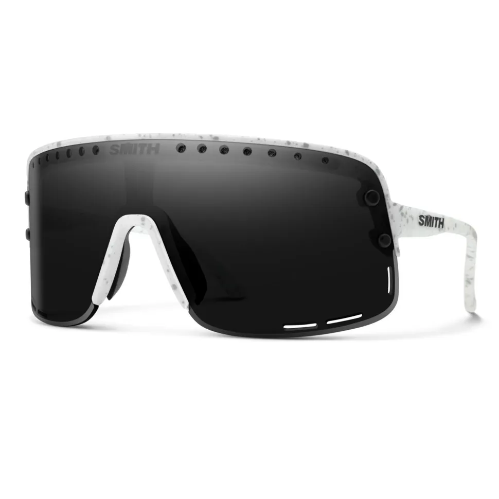 Mit Schutzkategorie 3 und angesagtem Retro-Design erinnert die Ultralite ChromaPop S3 Fahrradbrille von Smith an die kultigen Bike- und Snowboardbrillen der späten 1980er Jahre. Die leichte Shieldbrille ist mit getönter Scheibe der Schutzkategorie 3 ausgestattet und schützt die Augen zuverlässig vor Fahrtwind, UV-Strahlung, Sonnenlicht und Schmutz. Die gebogenen Bügel am schmalen Rahmen aus Evolve sind mit kleinen Löchern versehen, so dass die Brille mit dem passenden Brillenbande ausgestattet werden kann.