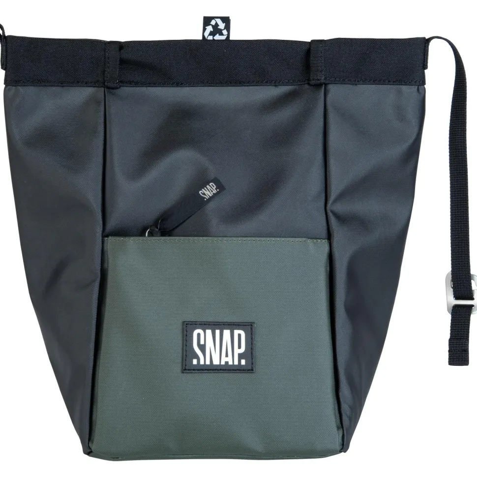 Das Big Chalk Bag der französischen Kletter-Spezialisten von Snap ist etwas mehr als nur ein praktisches Behältnis für Dein Magnesiumkarbonat. Denn dieser große, wasserdichte Chalk-Beutel hat auch noch zwei jeweils mit einem Reißverschluss gesicherte Taschen, in denen Du dein Smartphone, den Schlüssel, Geldbeutel oder Ähnliches verstauen und immer bei Dir haben kannst. Das Chalk-Fach wird mit einem Klettverschluss geschlossen.