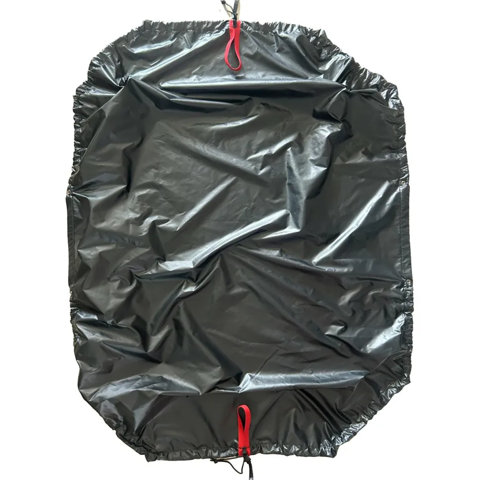 Das Tarp kann mit den beiden Klemmschnüren mit wenigen Handgriffen in einen Seilsack verwandelt werden, der sich dank gepolsterter Schulterträger bequem auf dem Rücken tragen lässt. Am Tarp gibt es zwei Befestigungspunkte für die Seilenden.