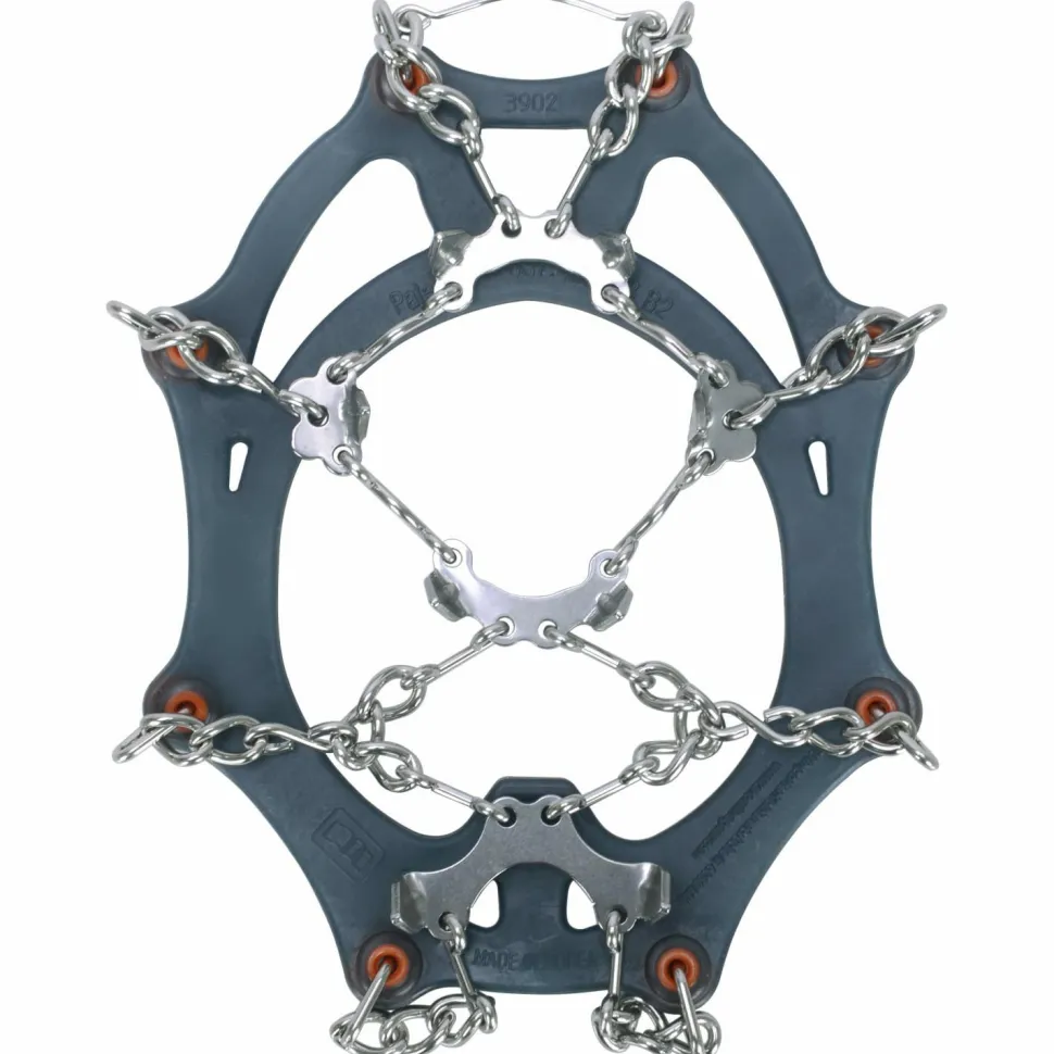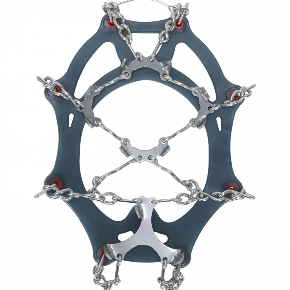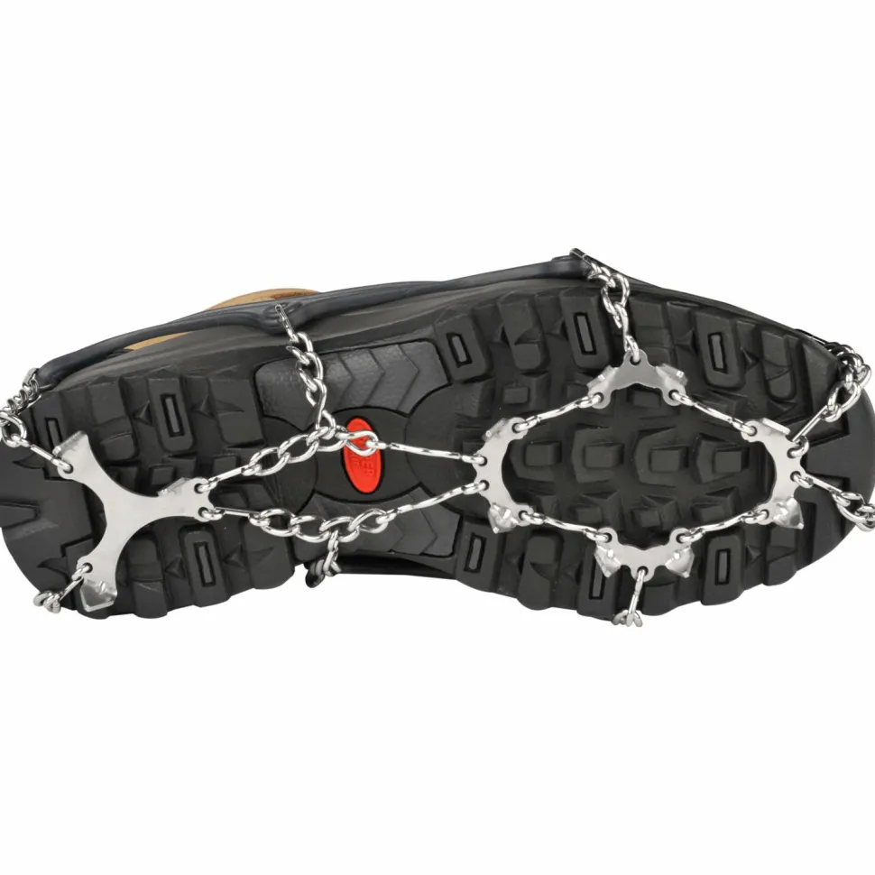 Die Chainsen Pro von Snowline bieten besonders viel Griffigkeit auf Schnee und Eis! 11 Zacken aus robustem, gehärtetem Edelstahl mit einer Länge von 1cm sorgen für viel Sicherheit beim Wandern oder Arbeiten im Winter auf gepresstem Schnee und Eis. Dank der Elastomer-Gummikonstruktion passen die Spikes auf unterschiedliche Schuhe wie Laufschuhe und isolierte Winterstiefel und können besonders schnell an- und ausgezogen werden. Die Snowline Chainsen Pro können im mitgelieferten Packbeutel für die Grödel transportiert werden und sind bei Bedarf schnell zur Hand.