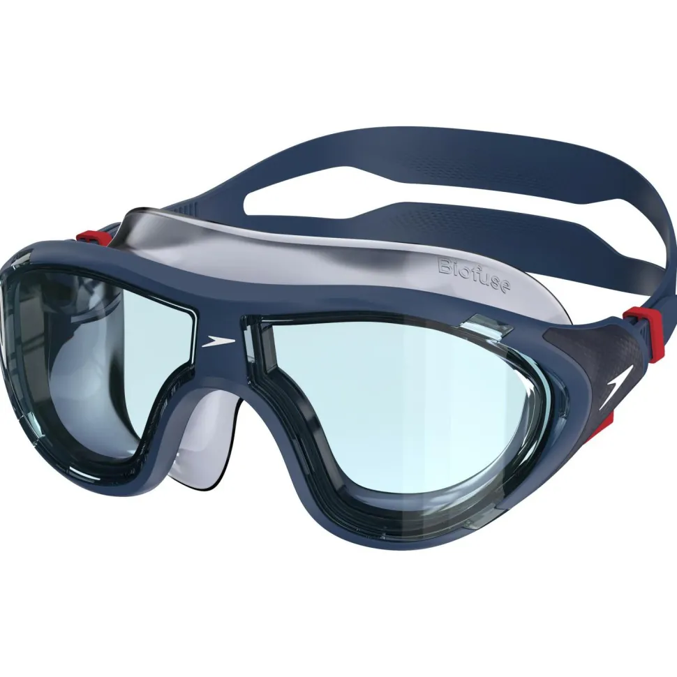 Die Biofuse 2.0 Mask von Speedo ist eine wassersportfreundliche Schwimmmaske der zweiten Generation. Sie ist eine Weiterentwicklung der Biofuse Rift-Maske und verfügt jetzt über ein gebogenes Glas für ein erweitertes Sichtfeld. Sie bietet mit einem weichen flexiblen Silikonrand, dem geteilten Riemendesign und einem benutzerfreundlichen Druckknopfmechanismus noch mehr Komfort und eine optimale Passform.