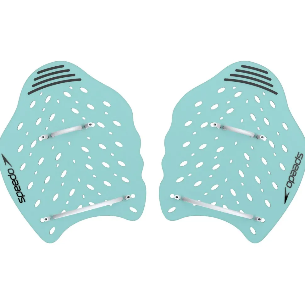 Die Power Paddles Plus von Speedo helfen Dir dabei, die Technik des Armzugs, des Eintauchens und des Durchziehens der Hand beim Schwimmen zu verbessern. Dank ihrer breiten, ergonomisch geformten Oberfläche fördern sie ein präzises Wassergefühl und unterstützen eine korrekte Ellbogenposition während des gesamten Bewegungsablaufs. Die Aussparungen ermöglichen einen gleichmäßigen Wasserfluss und sorgen für flüssige Bewegungen sowie Stabilität während der gesamten Zugphase. Robustes Material hält auch intensiven Trainingseinheiten problemlos stand. Dank austauschbarer Schlaufen kannst Du die Paddles individuell an die Handgröße anpassen.