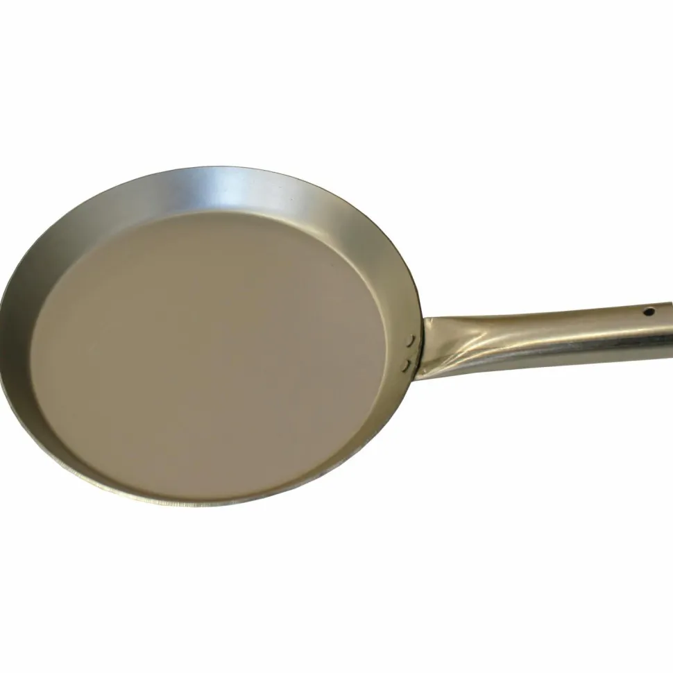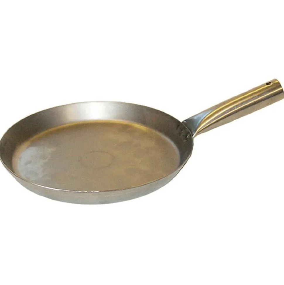 Die Jägerpfanne mit Festen Griff Offen Pfanne von Stabilotherm ist aus hochwertigem Kohlenstoffstahl gefertigt. Sie verfügt über einen festen Metallgriff und misst 21 cm im Durchmesser plus weitere 11 cm für den Griff. Dabei wiegt die robuste Pfanne 600 g.