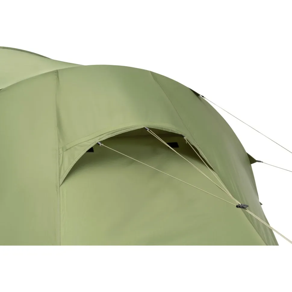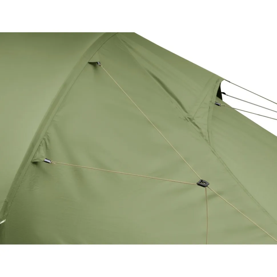 Praktische Details wie Netztaschen, Belüftungsöffnungen und Fixierungen für den Eingang, welche es erlauben, ihn hochzurollen, sorgen für mehr Ordnung und Komfort. Das Außenzelt hat eine Wassersäule von 3000 Millimetern, der Boden sogar 5000 mm. Beide sind PU-beschichtet und haben eine Reißfestigkeit von 8 Kilogramm. Somit ist für einen umfangreichen Wetterschutz gesorgt.
