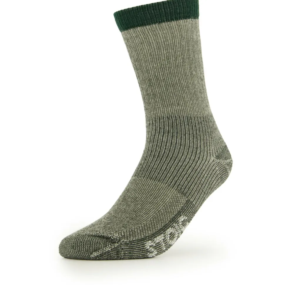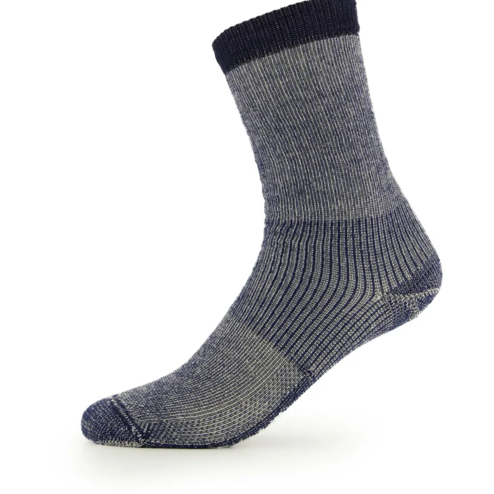 Mit den Stoic Merino Wool Cushion Heavy Socks erhältst Du ein Paar hochwertiger Wandersocken mit guter Dämpfung. Denn das Gewebe ist ziemlich dick, und zudem an den Zehen und Fersen zusätzlich gepolstert. Hierdurch profitieren Deine Füße auch bei langen Touren von bestmöglicher Dämpfung. Durch den hohen Wollanteil im Gewebe entsteht ein ausgeglichenes Mikroklima im Fußbereich und die Bildung unangenehmer Gerüche wird deutlich reduziert. Für noch mehr Komfort sorgt das gerippte Gewebe im Mittelfuß. Dieses garantiert einen perfekten Sitz und reduziert die Reibung im Schuh.