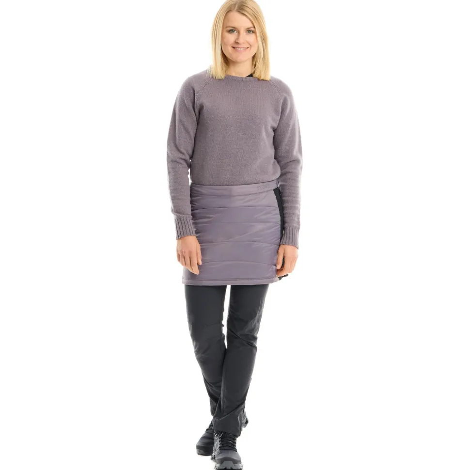 Damit Du den Rock auch unterwegs schnell drüberziehen, beziehungsweise ablegen kannst, ist er mit einem seitlichen Reißverschluss ausgestattet. Dieser lässt sich komplett öffnen und macht das Ganze zu einem Kinderspiel. Der elastische Hüftbund sorgt für einen rutschfesten Sitz und die Fronttasche bietet Platz für wichtige Kleinigkeiten. Wenn Du einen Rock suchst, der Dich bei niedrigen Temperaturen warmhält und dabei noch einen lässigen Outdoor-Look besitzt, ist der Women’s MountainWool KilvoSt. Padded Skirt die richtige Wahl!