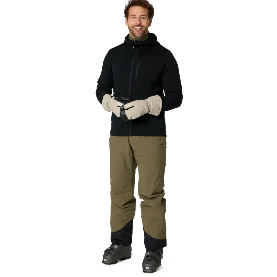 Der wetterfeste Außenhandschuh schützt Dich zuverlässig vor Wind und Schnee – und dank der robusten Ziegenleder-Innenhand hast Du immer besten Grip, egal ob am Skistock oder beim Handling Deiner Ausrüstung. Innen sorgt ein herausnehmbarer Handschuh aus Polyester-Woll-Fleece für angenehme Wärme und ein natürliches Tragegefühl. So bleibst Du flexibel, auch wenn sich die Bedingungen ändern.