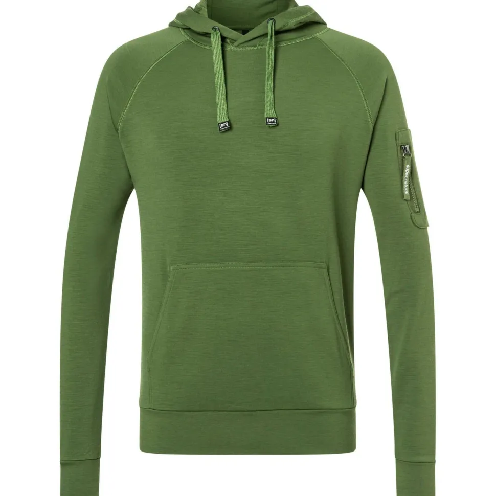 Dank der Materialzusammensetzung mit Merinowolle ist der Hoodie atmungsaktiv und temperaturregulierend. Er ist zudem geruchshemmend und kann daher mehrfach getragen werden.