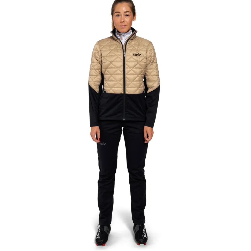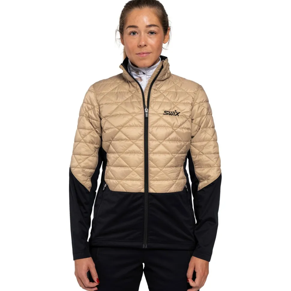 Die Women’s Infinity Hybrid Insulated Jacket Langlaufjacke von Swix ist perfekt für den Einsatz bei kühlem Wetter vorbereitet. Sie besteht aus Polyester und ist im Bereich von Brust, Schultern und Oberarmen mit besonders wärmenden Panelen ausgestattet. Ein durchgehender Frontreißverschluss mit Kinnschutz und hohem Kragen ergänzt die funktionelle Jacke. So bleiben auch Hals und Oberkörper bestens vor Wind und Kälte geschützt. Außerdem verfügt die Jacke über praktischen Taschen für die Hände und wichtige Accessoires. Ripstop Obermaterial mit abgesteppter Isolation setzt zudem optisch die entscheidenden Akzente.