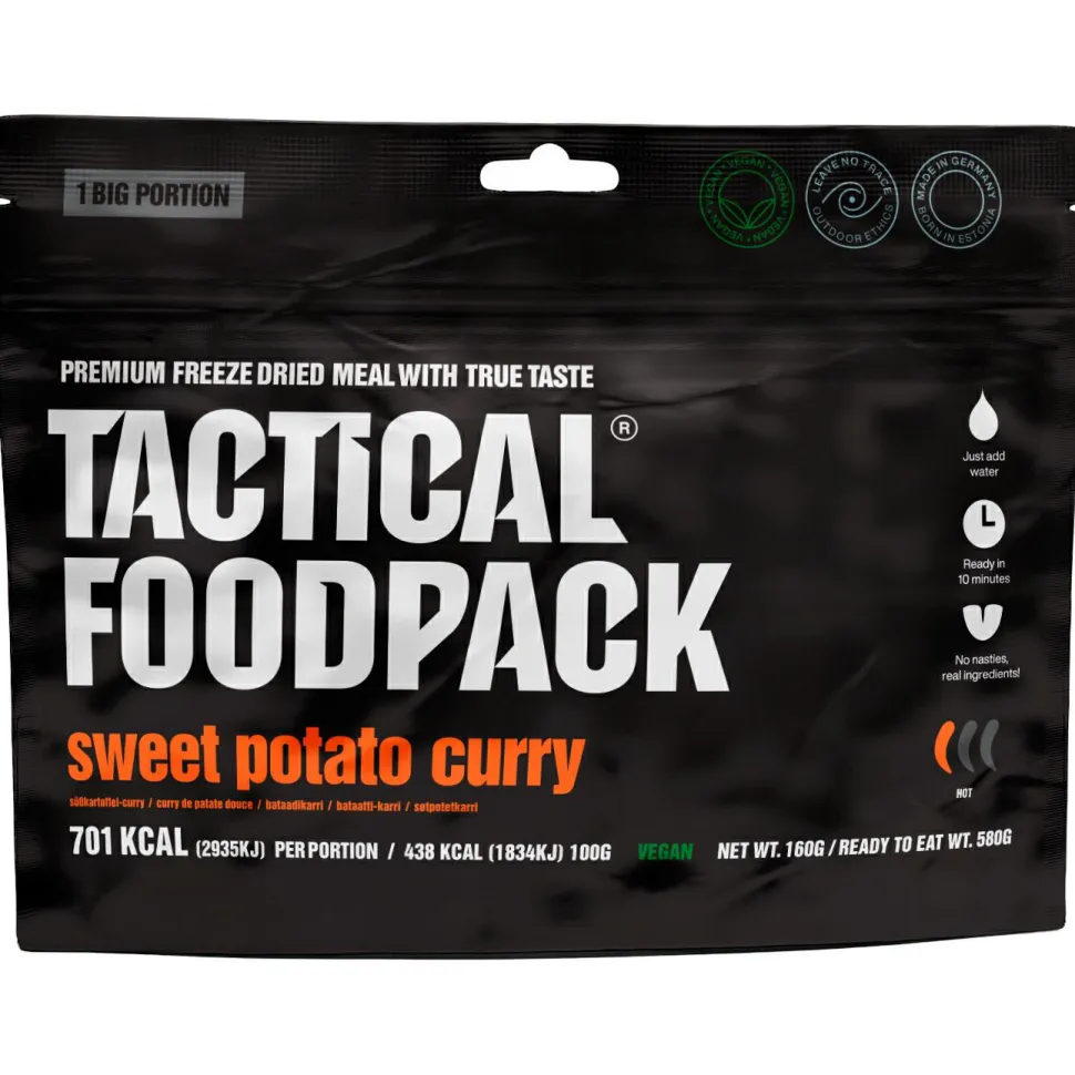 Genieße die kräftigen Aromen des Sweet Potato Curry Gerichts von TACTICAL FOODPACK, das mit zusätzlichem Curry und Chili noch schärfer gemacht wurde. Vollgepackt mit nährstoffreichen Süßkartoffeln und Kichererbsen ist dieses schmackhafte Gericht ideal für Vegetarier und Veganer. Ein köstliches Outdooressen für Deine Abenteuer!