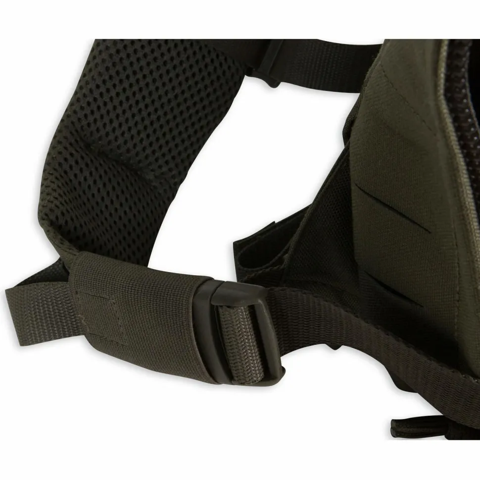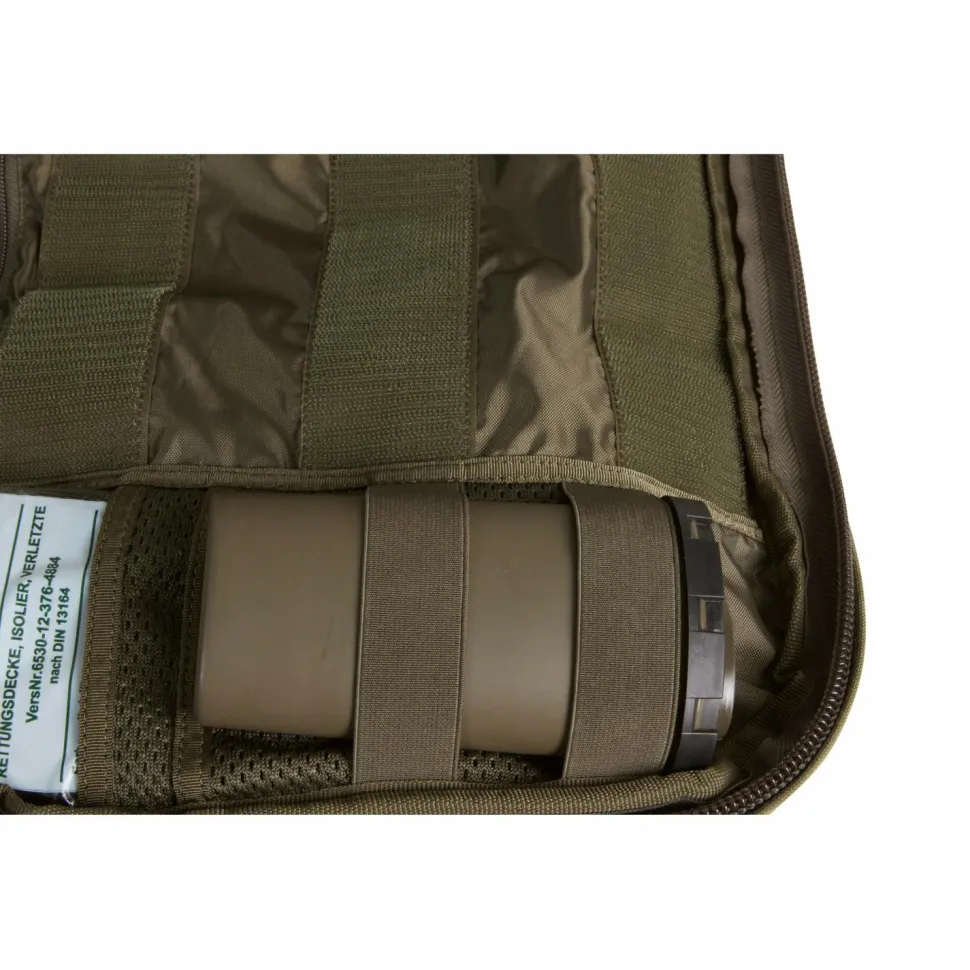 In seinem Innenraum sorgen separate Taschen, darunter eine Scherentasche, für eine ordentliche Übersicht. Farblich markierte Taschen helfen beim schnellen Zurechtfinden. So hat man den richtigen Gegenstand schnell zur Hand. Der Daypack kann dank abnehmbarer Schulterträger auch als Tasche getragen werden. Das Molle-System dient der individuellen Erweiterung des Rucksackes. Für das Survival Training und den Einsatz ein unverzichtbarer Partner!