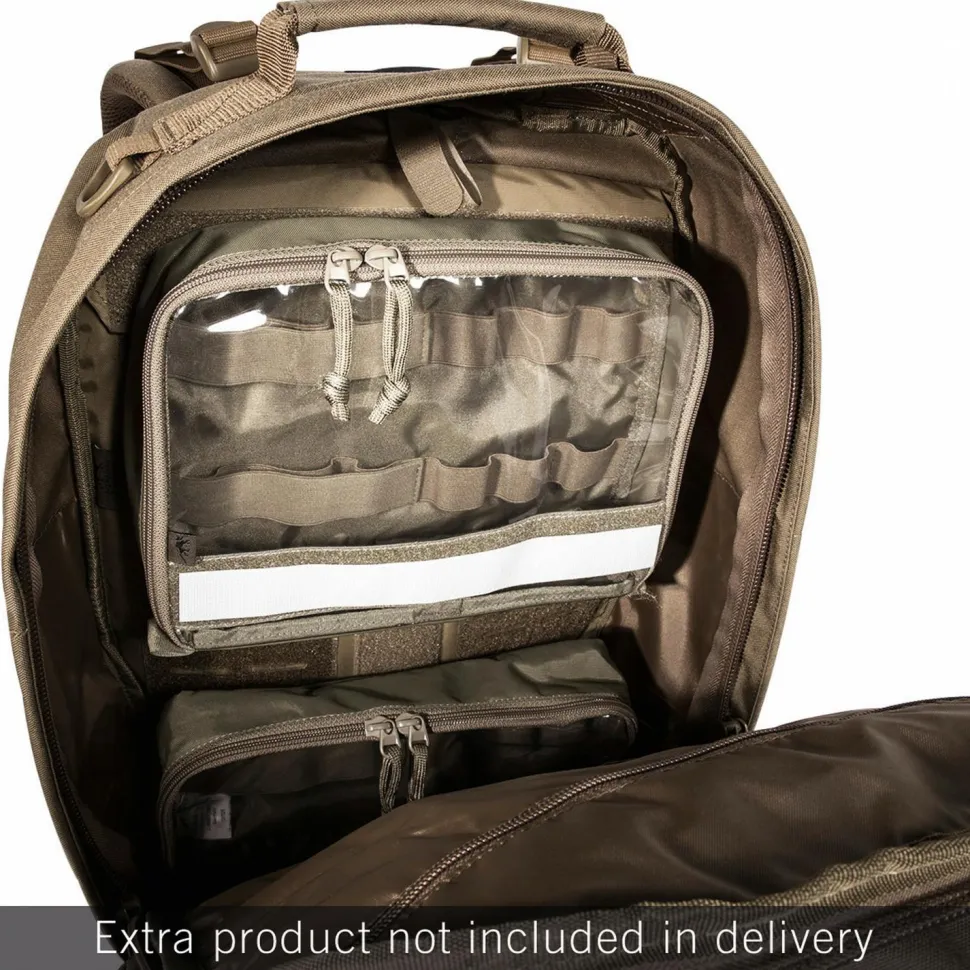 Der Rucksack wird in zwei Hauptfächer unterteilt, die interne Organizerfächer aufweisen. Das sorgt für eine übersichtliche Ordnung. Antennendurchlässe sind praktisch für ein Funkgerät, der Bergegriff kommt beim Verwundetentransport zum Einsatz. Mit dem Molle-System lässt sich der Rucksack erweitern. Auch für taktische Einsätze ist der Mission optimal!