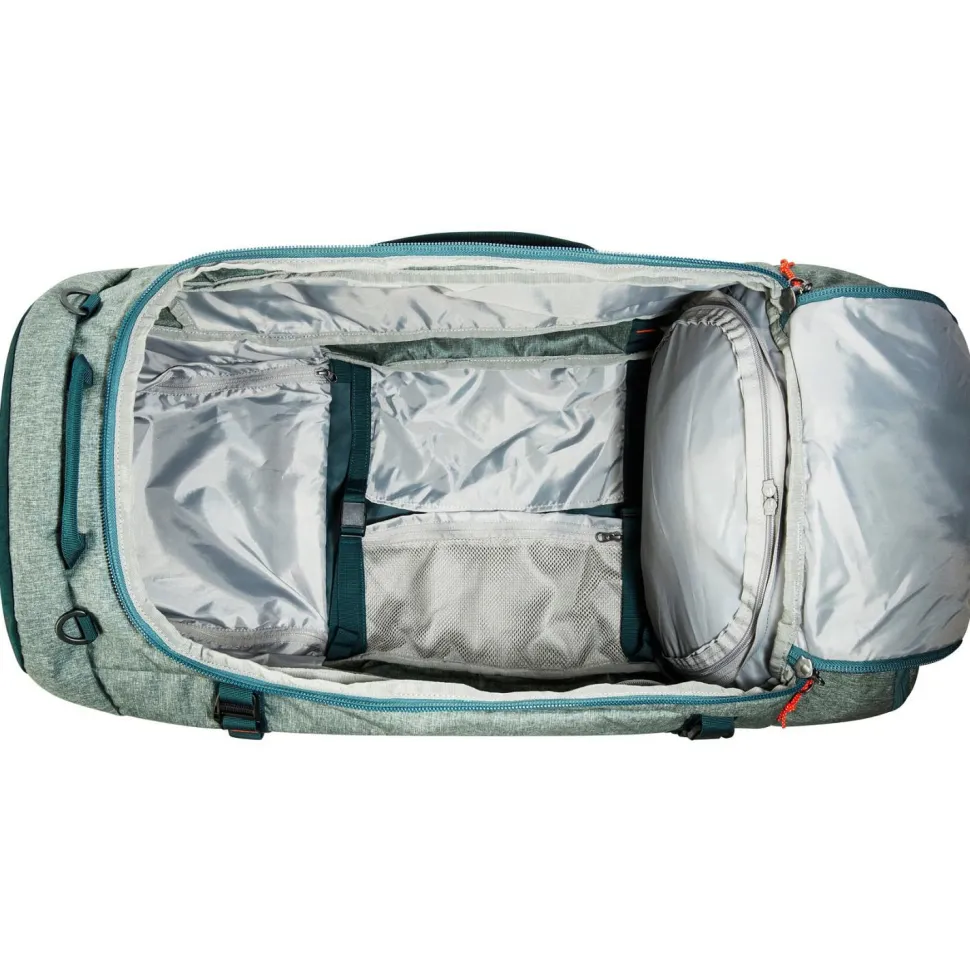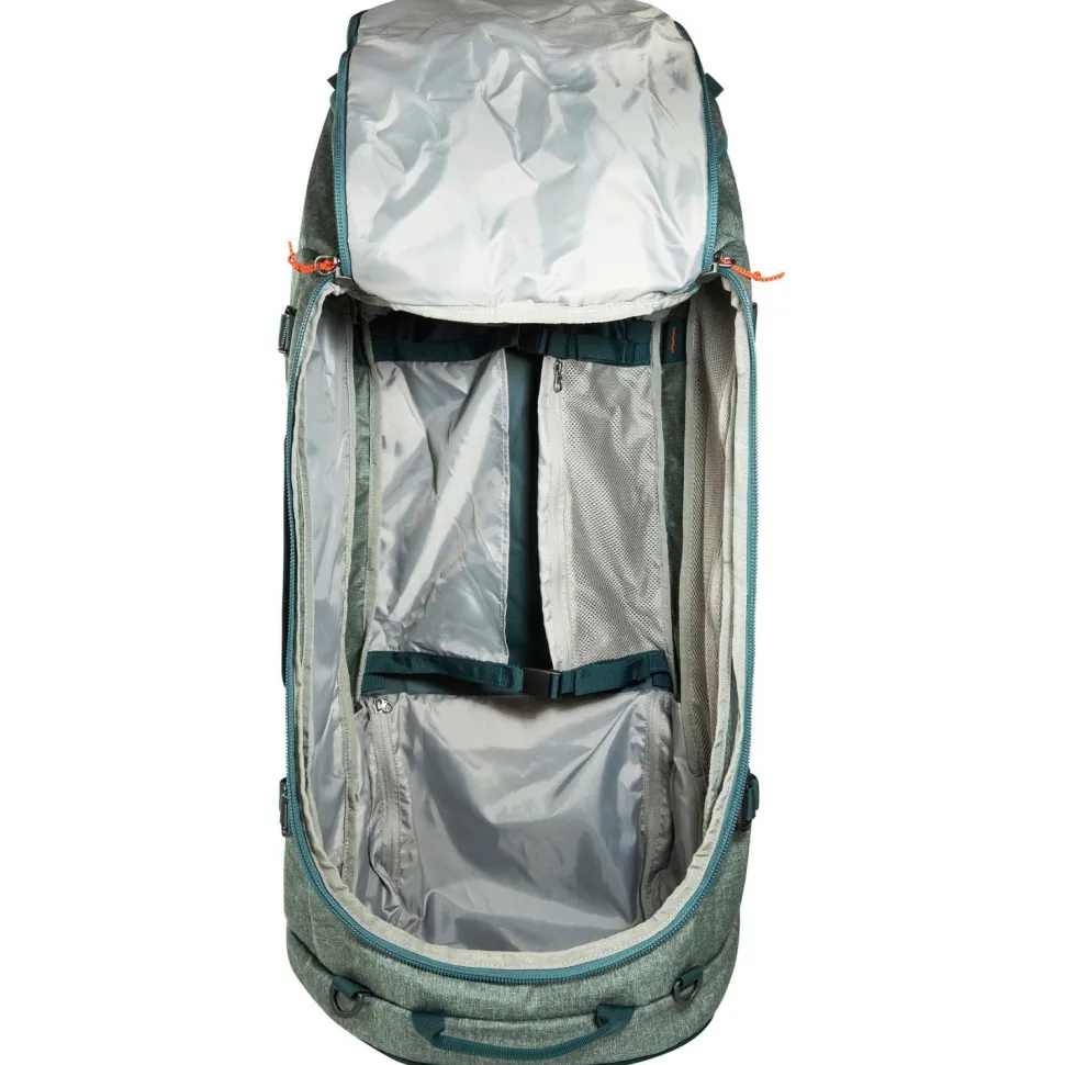 Der Duffle Roller 80 von Tatonka ist wirklich praktisch, gerade auch für längere Reisen. Mit einem Fassungsvermögen von 80 Litern bietet er ausreichend Platz für das Gepäck einer zweiwöchigen Reise. Das robuste T-Travel Tex Melange Material ist PFC/PFAS-frei und langlebig. Eine Besonderheit ist die Möglichkeit, den Duffle Roller in der eigenen Deckeltasche zu verstauen, wenn er nicht benötigt wird.
