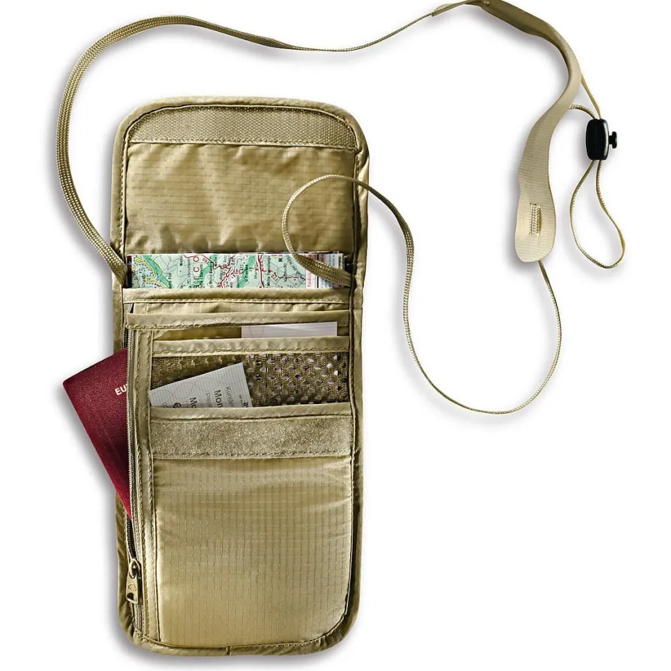 Kleinigkeiten immer griffbereit – mit dem Skin Neck Pouch Wertsachenbeutel von Tatonka! Der Brustbeutel ist nicht nur klein und leicht, sondern wartet mit speziellen Annehmlichkeiten und Details auf. So ist die auf der Haut aufliegende Rückseite aus angenehm weichem Material gefertigt und das längenverstellbare Umhängeband besitzt Nacken- bzw. Schulterauflagen, die unangenehmer Reibung entgegenwirken. Ein Organizer sorgt ebenso für Ordnung wie das Extra-Reißverschlussfach und die aufgesetzte Tasche für Geld, Pass und Kreditkarten. Mit dem Skin Neck Pouch geht so schnell nichts mehr verloren!