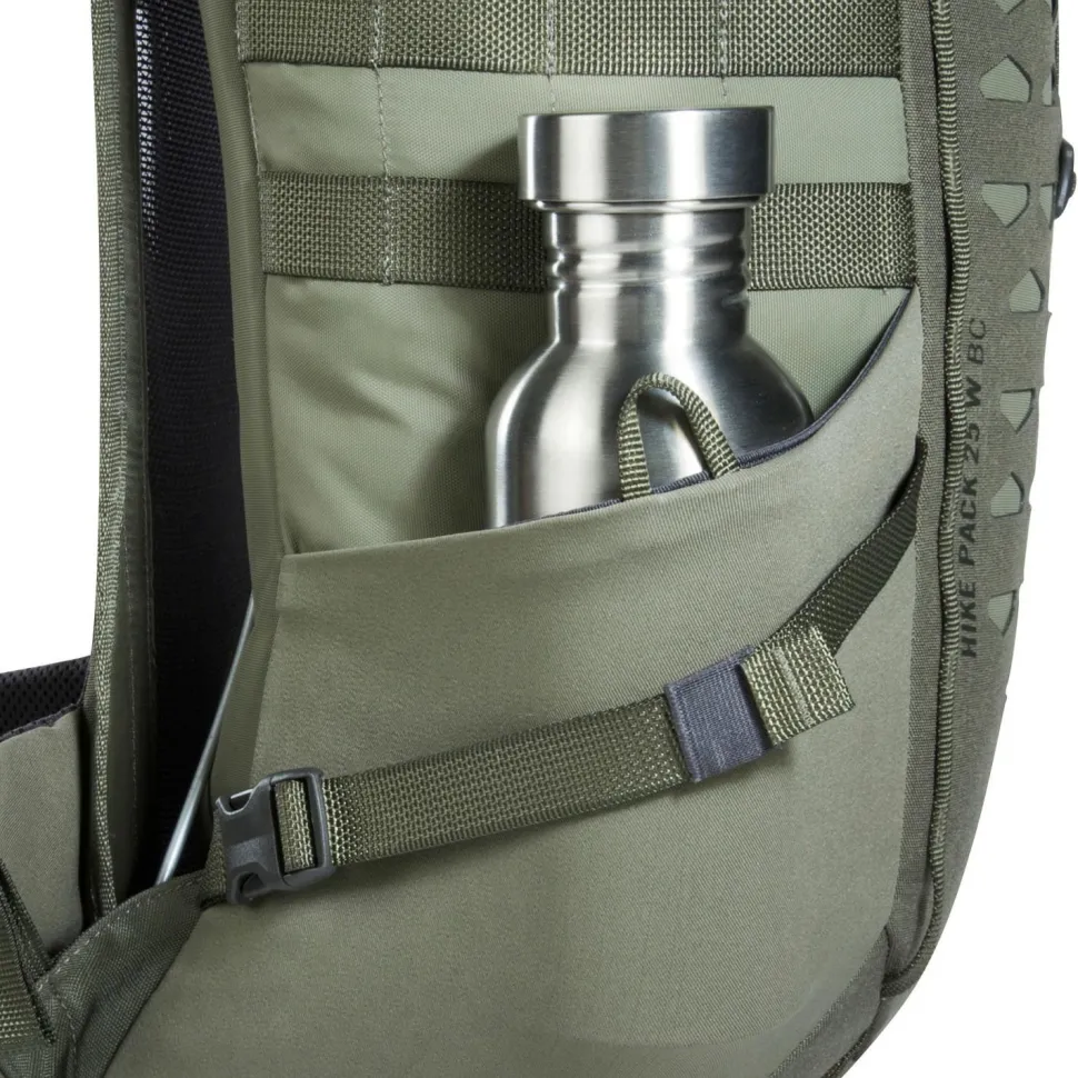 Das Hauptfach des Women’s Hike Pack BC 25 lässt sich komplett aufziehen, und die Klettflächen im Inneren bieten Platz für Zubehörtaschen. Das MOLLE-kompatible modulare Befestigungssystem auf der Front und den Seiten erlaubt die Erweiterung mit zusätzlichen Taschen. Der abnehmbare Hüftgurt ist mit einer Reißverschlusstasche und Materialschlaufen ausgestattet, und kann separat als Gürtel verwendet werden. Das Gewebe ist mit einer PFC/PFAS-freien Imprägnierung ausgestattet, und eine Regenhülle gehört ebenfalls zum Lieferumfang.
