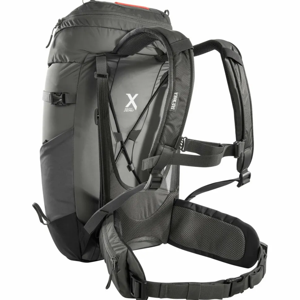 Das durchdachte X Vent Zero-Tragesystem kannst Du je nach Temperatur oder Aktivitätslevel straffen oder lockern. So beeinflusst Du unkompliziert die Ventilation im Rückenbereich. Das Mesh-Netz ist großzügig ausgeschnitten und legt bei straffer Einstellung beinahe den gesamten Rücken frei. Gleichzeitig verteilt das System die Last rückenschonend.