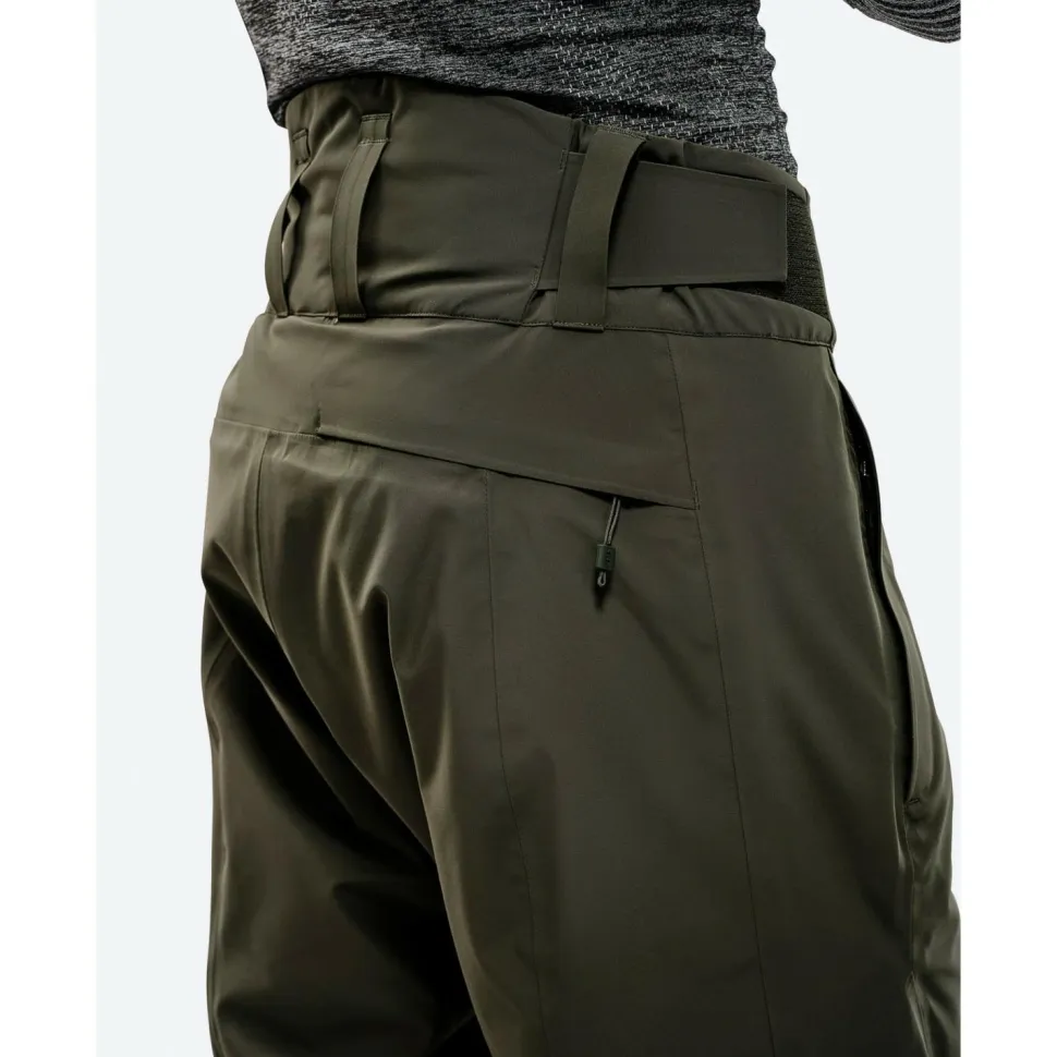 Die Carv Insulated Stretch Pant von The Mountain Studio eignet sich hervorragend für Outdoor-Aktivitäten. Mit ihrem 3-Lagen-Laminat bietet sie Dir optimalen Schutz vor Wind und Wetter. Die Kombination aus einer robusten äußeren Schicht, einer wasserdichten und atmungsaktiven Membran sowie einer komfortablen inneren Schicht sorgt dafür, dass Du bestens gegen die Elemente gewappnet bist. Mit einer Wassersäule von 30.000 mm und einer Atmungsaktivität von 30.000 g/m²/24h (MVTR) bietet die Hose Schutz bei schwierigen Wetterbedingungen. Die DWR-Imprägnierung und getapten Nähte bieten zusätzlichen Schutz vor Nässe.
