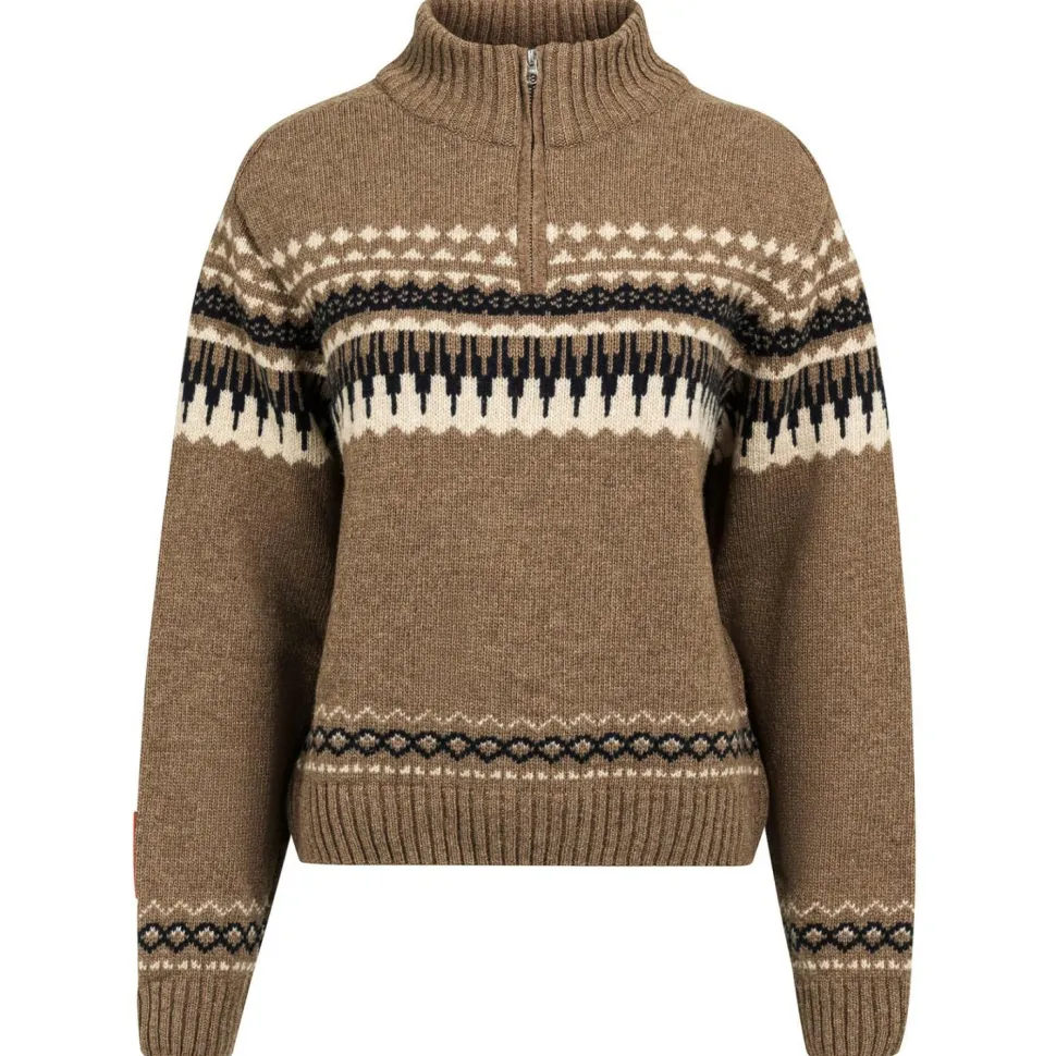 Der Women’s Ski Lambswool Sweater von The Mountain Studio eignet sich für kalte Tage in der Natur und den Bergen. Er ist atmungsaktiv, schnelltrocknend, temperaturregulierend und geruchshemmend. Dank der geruchshemmenden Eigenschaften eignet er sich dafür, ihn auch mehrere Tage hintereinander zu tragen. Der Stehkragen schmiegt sich angenehm an den Hals an. Dank des halblangen Front-Reißverschlusses kannst Du ihn flexibel tragen. Das Strickmuster zieht alle Blicke auf sich und macht den Merinopullover zu einem echten Blickfang. Du kannst ihn vielseitig kombinieren.