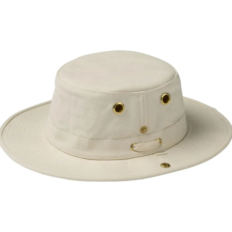 Der Tilley The Classic T3 ist der perfekte Hut für alle Freizeit- und Outdoor-Aktivitäten. Er besteht zu 100 % aus hochwertiger Baumwolle und hat eine flache, breite Krempe. Das Naturmaterial sorgt für ein angenehmes Trageklima und zeichnet sich durch hohen Komfort aus. Seitliche Schnappverschlüsse und die kultigen Ösen erleichtern die Anpassung. Für eine ideale Passform und Belüftung. Er bietet einen Sonnenschutz von UPF 50+.