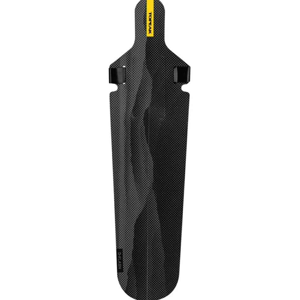Das D-Flash Express S Schutzblech von Topeak ist extrem leicht, sieht cool aus und lässt sich in kürzester Zeit montieren. Im Einsatz sorgt es dafür, dass Spritzwasser und Schmutz schnell wieder auf den Boden der Tatsachen zurückgeschleudert werden und sich nicht in der Kleidung oder gar dem Gesicht des Bikers festsetzen können. Mit den robusten Klettgurten kann das Schutzblech angebracht werden und sitzt fest, auch wenn es mit dem Bike holprig von A nach B geht.