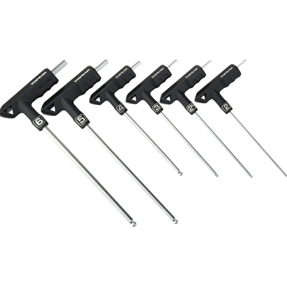 Das T-Handle DuoHex Wrench Set von Topeak bietet Dir die sechs wichtigsten Innensechskantschlüssel in ergonomischer T-Form. Kugelköpfe an den 4-, 5- und 6-mm-Schlüsseln erleichtern Arbeiten an schwer zugänglichen Schrauben, während der rutschfeste Griff für Komfort und Kontrolle sorgt – selbst bei hohen Drehmomenten. Gefertigt aus SNCM-V- und Chrom-Vanadium-Stahl, überzeugt das Set durch Langlebigkeit und Vielseitigkeit für Werkstatt und unterwegs.