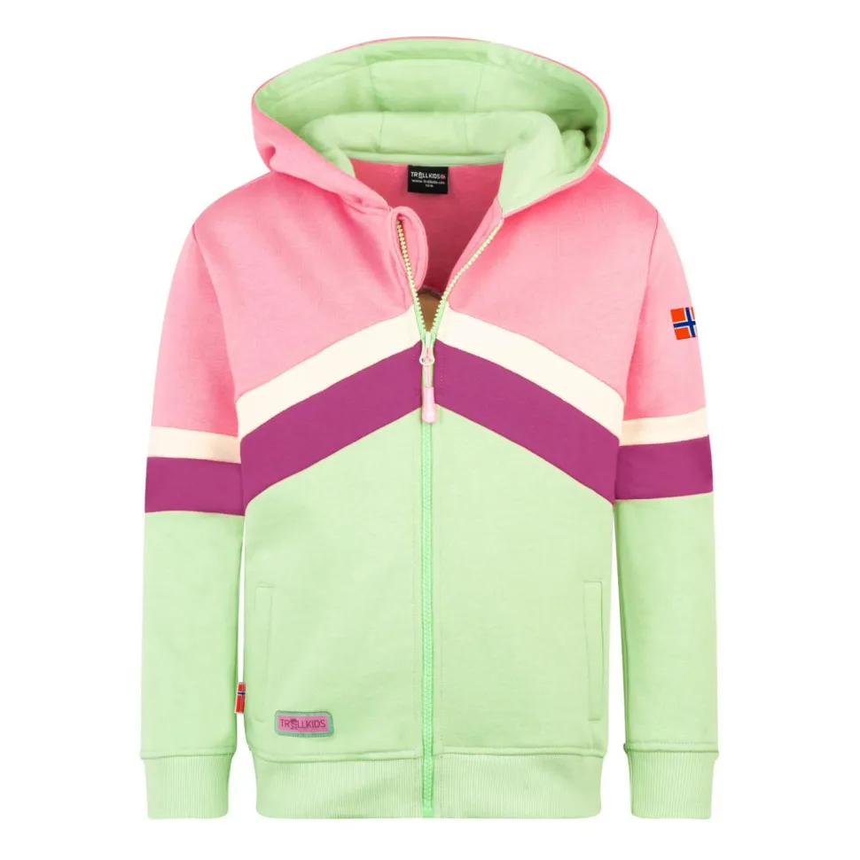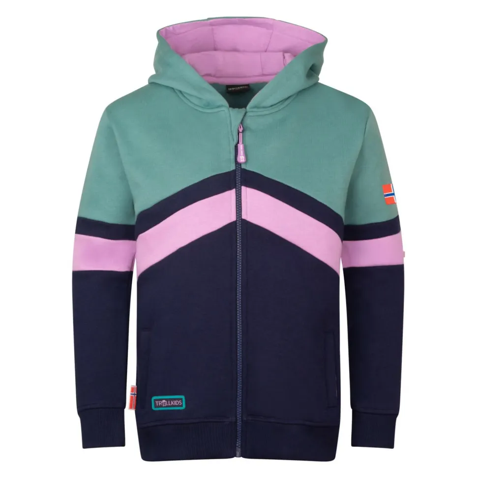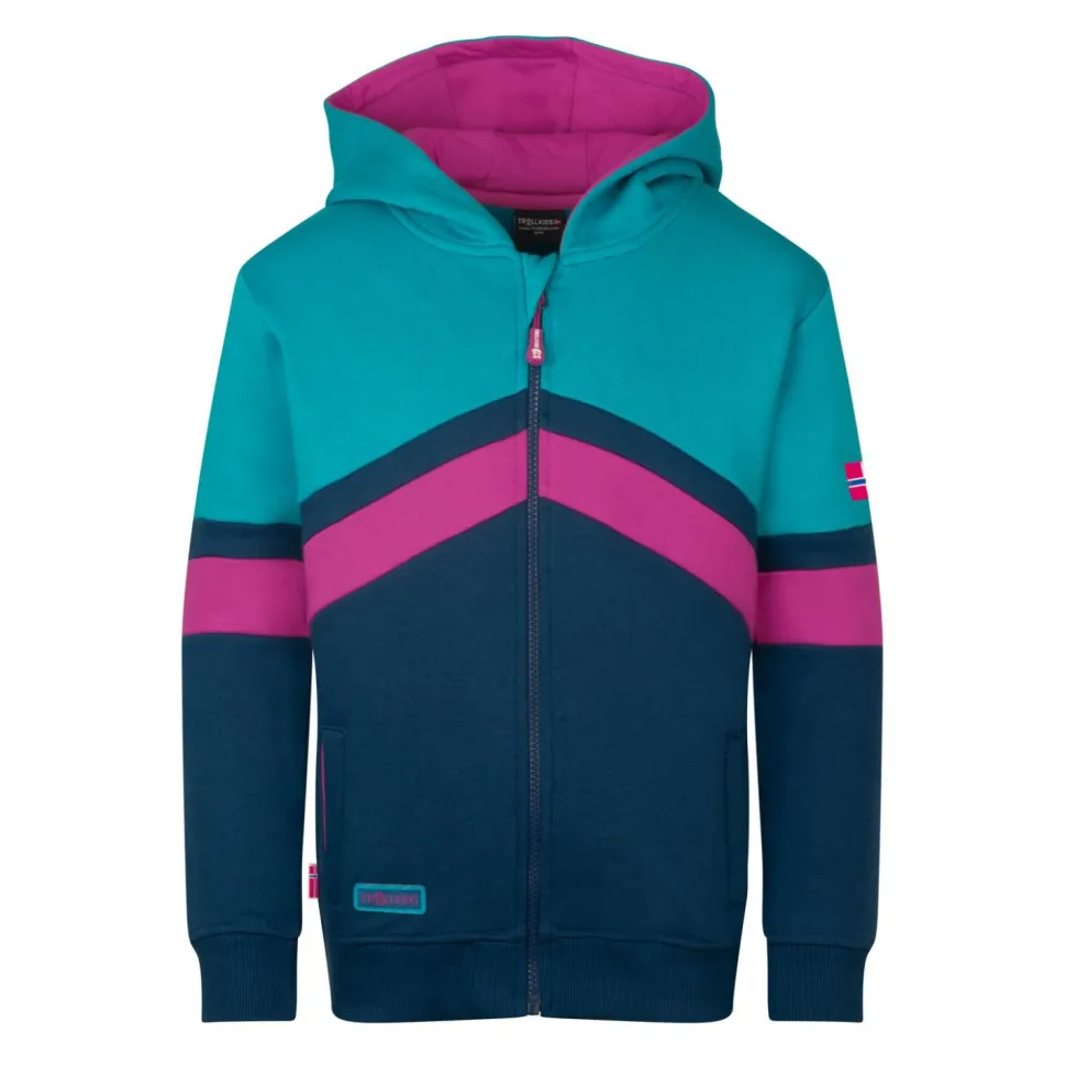 Ob beim Sport oder als Ersatz für einen Pullover, die Girl’s Flekkefjord Jacket von Trollkids macht immer eine gute Figur. Diese Sweatjacke ist vielseitig einsetzbar und sieht obendrein gut aus. Durch den geraden Schnitt ist sie sehr angenehm zu tragen und wirkt nicht einengend. Der Saum und die Ärmelbündchen sind bei dieser Trainingsjacke elastisch und sorgen somit für einen guten Abschluss.