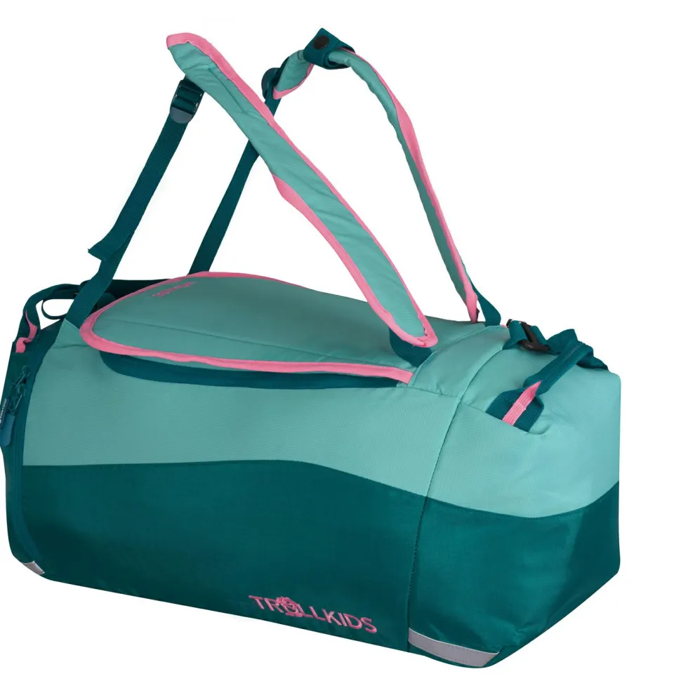 Die Kid’s Duffle Bag Reisetasche von Trollkids ist vielseitig einsetzbar. Dein Kind kann sie mit zum Hallensport, in die Kletterhalle oder ins Schwimmbad nehmen. Besonders gut eignet sie sich aber zum Reisen, da die Schulterträger bei Check-ins am Flughafen einfach zu verstauen sind. Damit das Gepäck keine Schäden nimmt, wenn es am Flughafen durch die Gegend geworfen wird, sind in die Kid’s Duffle Bag Reisetasche Schutzpolster eingearbeitet worden. Das Material der Kid’s Duffle Bag Reisetasche ist sehr robust und langlebig.