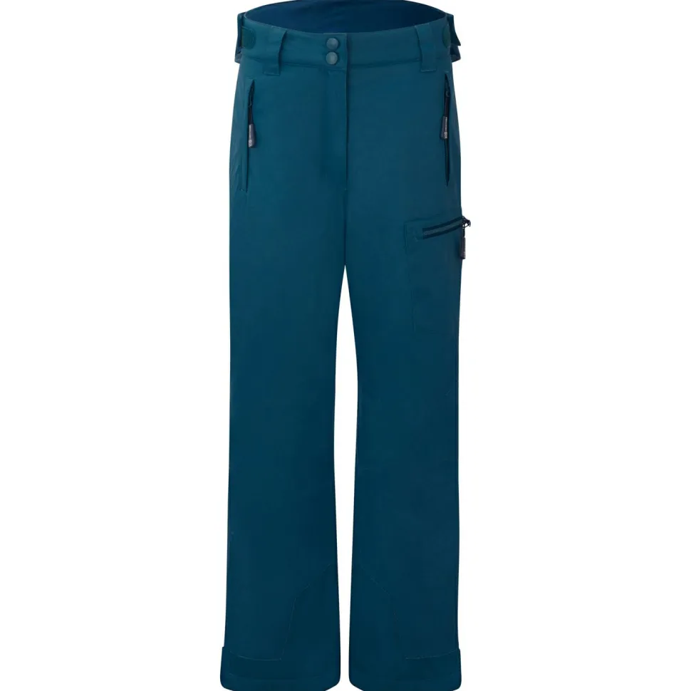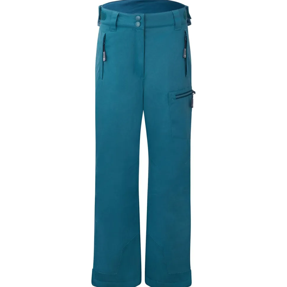 Mit insgesamt fünf Taschen – zwei mit Reißverschluss an der Hüfte, eine am Oberschenkel und zwei mit Klettverschluss am Gesäß – ist genug Platz für kleine Schätze, Taschentücher oder das Geld für die heiße Schokolade. Vorgeformte Kniepartien sorgen für extra Bewegungsfreiheit, und die integrierten Gamaschen sowie die per Klett verstellbaren Beinabschlüsse halten Schnee zuverlässig draußen.