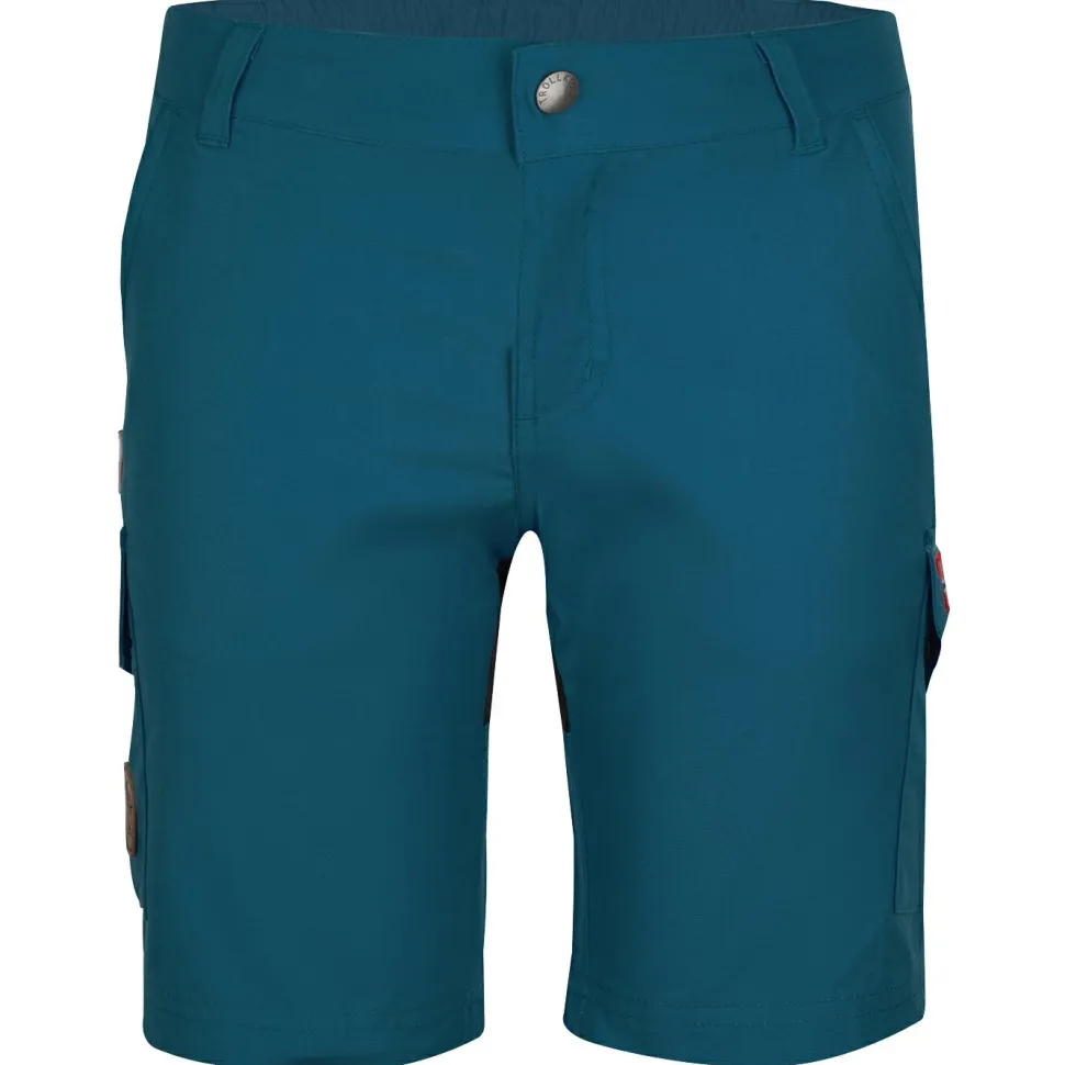 Die Kid’s Hammerfest Shorts von Trollkids ist eine robuste, dicht gewebte, schnell trocknende Shorts, mit der man seine Outdoor-Abenteuer an sommerlichen Tagen verwirklichen kann.Das Polyester-Baumwoll-Mischgewebe ist strapazierfähig und lässt sich leicht reinigen. Werden die Kids bei Spielen im Freien vom Regen überrascht, kann die Hose auch schnell wieder trocknen.Mit einem zusätzlichen Gummizugband und einem Knopf auf der Bundinnenseite lässt sich die Hose individuell in der Weite anpassen. Stretch-Einsätze am Gesäß sorgen für Tragekomfort und hohe Bewegungsfreiheit. Praktisch sind auch die zwei großen Cargotaschen mit Druckknopf an der Seite, in denen kleinere Sachen griffbereit verstaut werden können.Braucht man eine langlebige, robuste und pflegeleichte Hose zum Draußenspielen, Campen und Wandern, dann liegt man mit der Kid’s Hammerfest Shorts genau richtig!