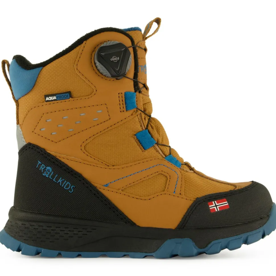 Auch in Sachen Funktionalität punkten die Kid’s Kirkenes Winter Boots. Mit der elastischen Schnellschnürung kann Dein Kind auch schon ganz alleine klarkommen, wenn es noch nicht richtig binden kann. Somit ist es in der Lage, sich selbstständig die Schuhe an und auszuziehen.Das Außenmaterial hat Trollkids mit einer PU-Schicht überzogen und das Innenmaterial mit einer wasserdichten Membran versehen, sodass Dein Kind auch nach stundenlangem Spielen im Schnee keine nassen Füße bekommt.Die Gummisohle mit Profil verhindert, dass Dein Kind auf Schnee oder Glatteis ins Rutschen kommt,