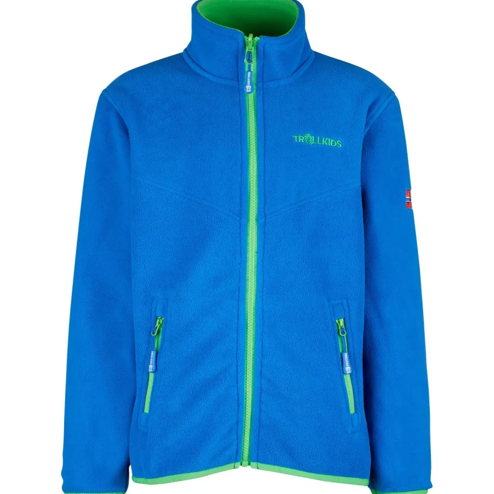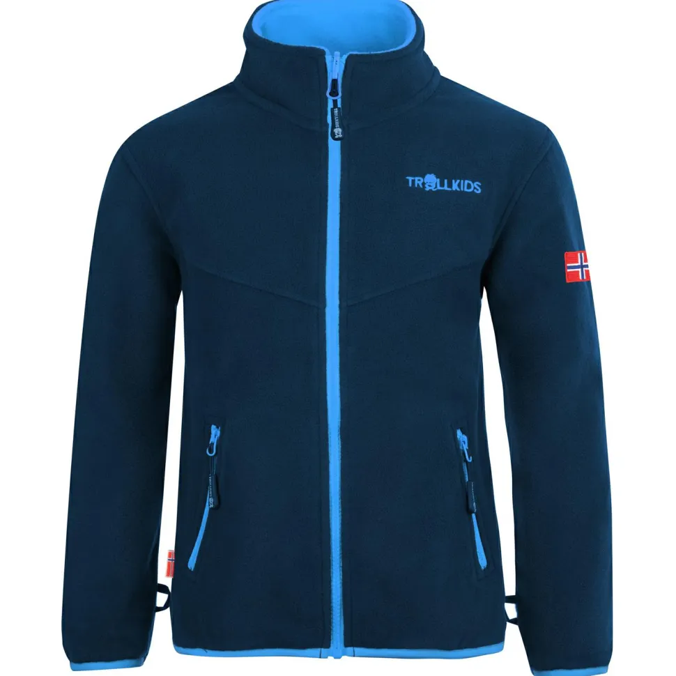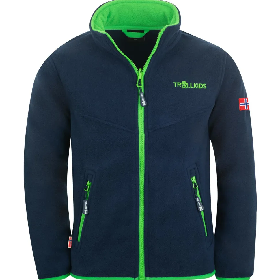 Mit der kuschligen Fleecejacke Kids Oppdal Jacket XT von Trollkids sind Jungs und Mädchen angenehm warm angezogen. Die hochwertige, leichte Fleecejacke in kindgerechtem Design lässt sich sowohl solo als auch als Zip-In-Jacke in Kombination mit einer Hardshell tragen. Elastische Ärmelbündchen und ein elastischer Saum halten die Wärme am Körper und optimieren die Passform. Zwei Taschen mit Reißverschluss bieten Stauraum für alles, was die lieben Kleinen unterwegs gerne dabei haben. Mit schönem, gesticktem Trollkids-Logoprint auf der Brust und am Ärmel.