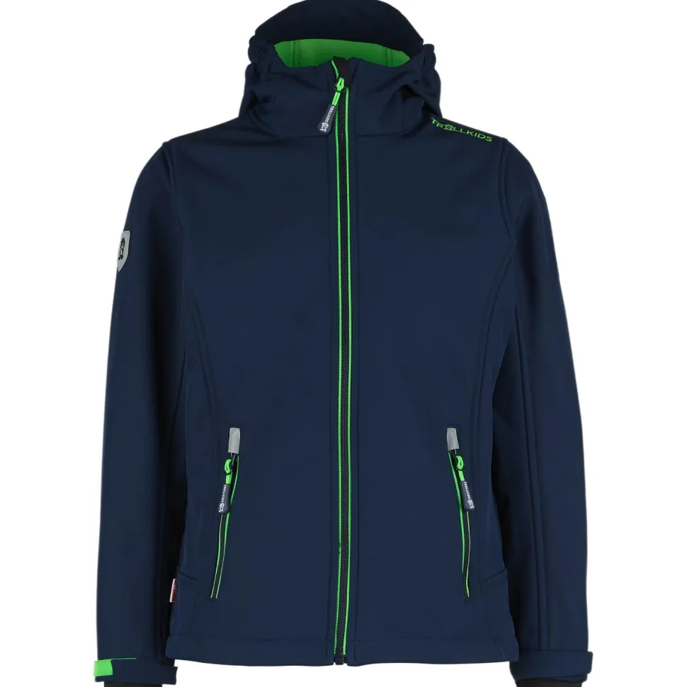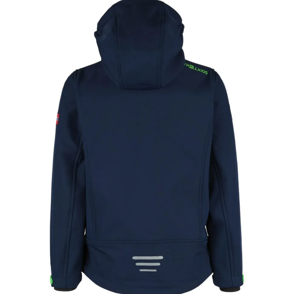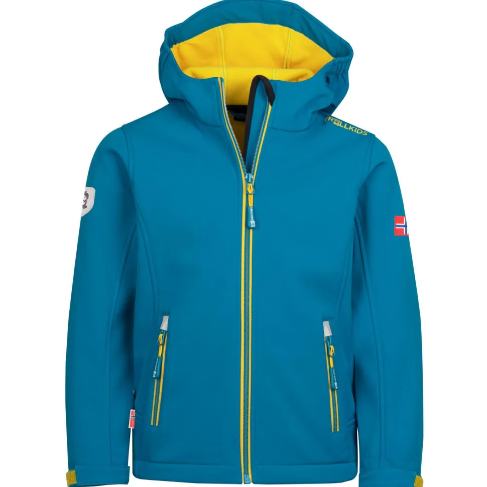 Die Kid’s Trollfjord Jacket von Trollkids ist eine winddichte, wasserabweisende und flexible Softshelljacke, die bestens für die Übergangszeiten geeignet ist. Das Fleece-Material auf der Innenseite der Jacke hält die Kinder dabei schön warm.Ausgestattet ist die Jacke mit einer Kapuze, 2 Reißverschlusstaschen vorne und Klettverschlüssen an den Ärmelenden.Reflektierende Details auf der Jacke sorgen dafür, dass man bei schlechten Lichtverhältnissen besser gesehen wird.Auf den Ärmeln befindet sich der Lonely Troll aus dem Trollkids-Logo und die norwegische Flagge – zusammen mit dem kontrastfarbigen Design wird die Jacke zu einem echten Hingucker!