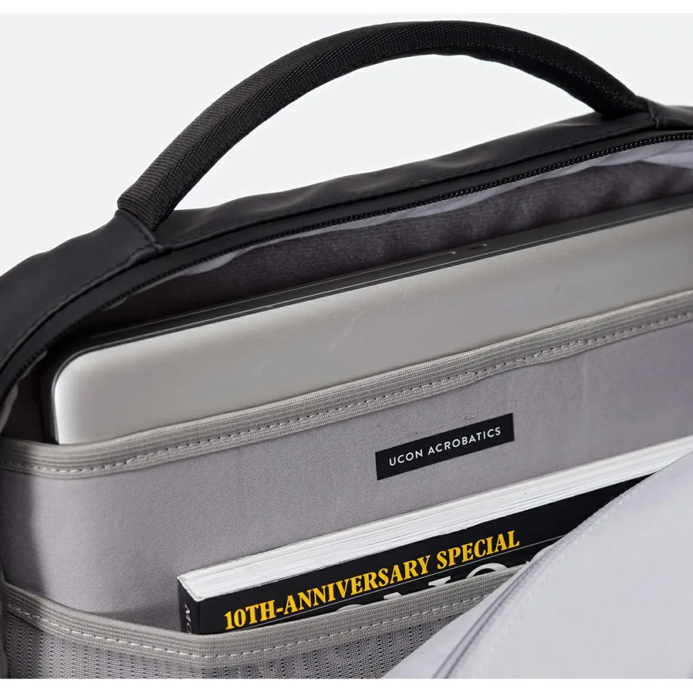 Der Lotus Hajo Pro 20 von Ucon Acrobatics ist ein toller Begleiter für Freizeit und Alltag. Der Daypack kommt mit einem Roll-Top und Klettverschluss und fasst ein Volumen von bis zu 20 Litern in ausgerolltem Zustand. Damit bietet er ausreichend Platz, um alles Wichtige für den täglichen Gebrauch einzupacken. Außen besitzt der Daypack insgesamt drei Eingrifftaschen für beispielsweise ein Fahrradschloss. Im Inneren gibt es ein Notebook-Fach für Laptops bis zu 15,4″. Außerdem befinden sich an dem Fach zwei aufgesetzte Mesh-Taschen, die sich ideal fürs Smartphone oder einen kleinen Geldbeutel anbieten. Auch ein Flaschenhalter und eine Halterung für den Schlüssel sind vorhanden.