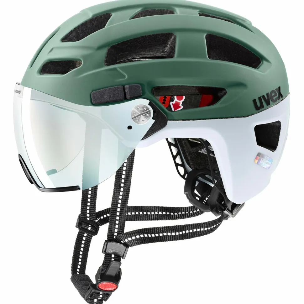 Der Finale Visor Vario Radhelm von uvex kommt mit einem großen und selbsttönenden Visier daher und ist somit für den ultimativen Durchblick, sowie maximalen Schutz verantwortlich. Das selbsttönende Glas des Helms passt sich an wechselnde Lichtverhältnisse an und bietet dem Träger immer den optimalen Blick. Zudem wird er vor Wind, Wetter und Fremdkörpern wie Insekten geschützt und kann sich voll und ganz auf das Radfahren konzentrieren.