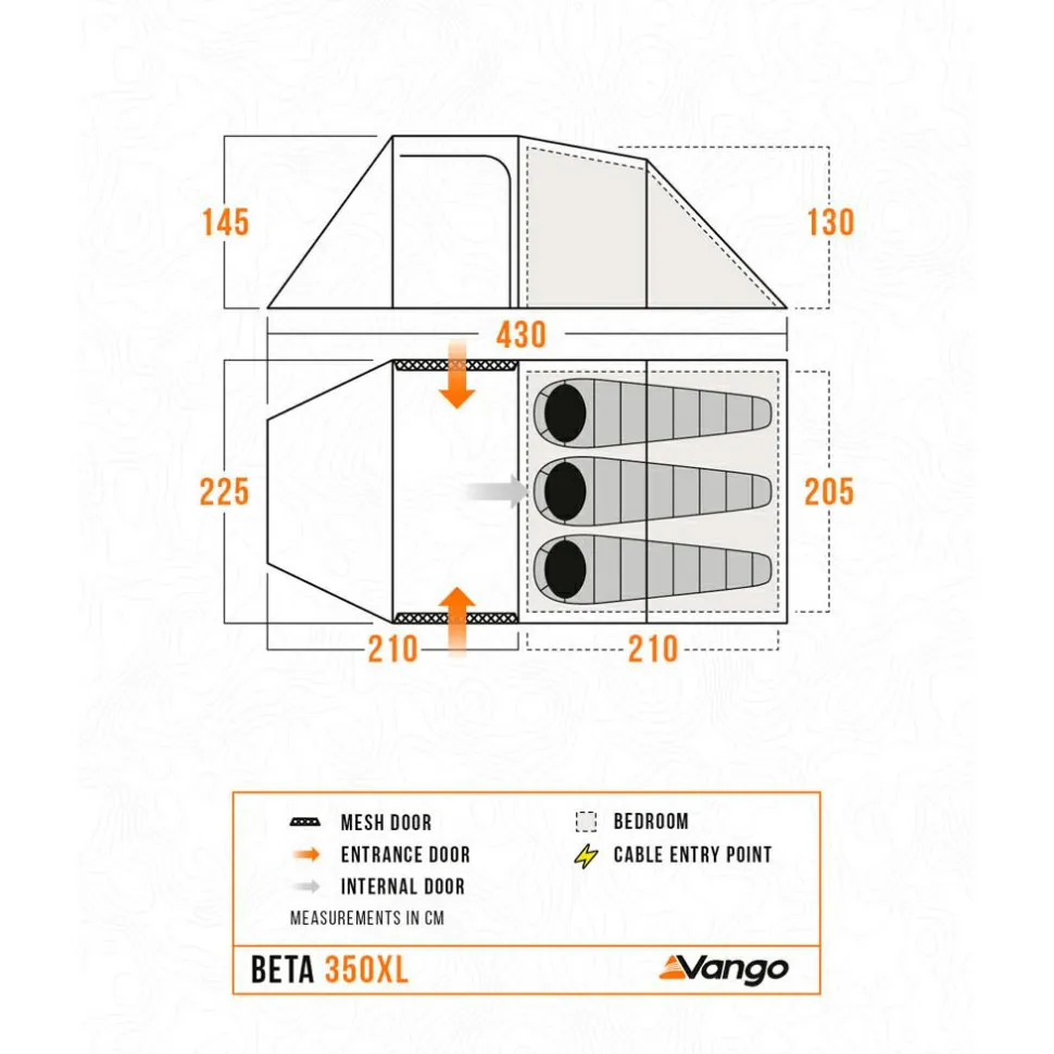 Das Beta 350XL-Dreipersonenzelt von Vango bietet Dir und zwei weiteren Personen großzügigen Schlafplatz und einen großen, funktionellen Vorraum zur Aufbewahrung Deines Gepäcks und der Campingutensilien. Ideal für kleine Familien! Das Zelt besteht aus robustem Sentinel Fabric (4.000mm Wassersäule), das mit der ColourLok Eco-Technologie ausgestattet ist, um sicherzustellen, dass Dein Zelt seine Farbe länger behält. Das Dynamic Weave 100™-Gewebe sorgt für ein geringes Packmaß und Gewicht bei gleichzeitig hoher Qualität und langer Lebensdauer des Zeltes. Die Midnight Bedrooms sorgen für einen besseren Schlaf, während der etwas größer dimensionierte Easy-Pack-Packsack das Verstauen des Zelts nach einem großartigen Campingtrip erleichtert.