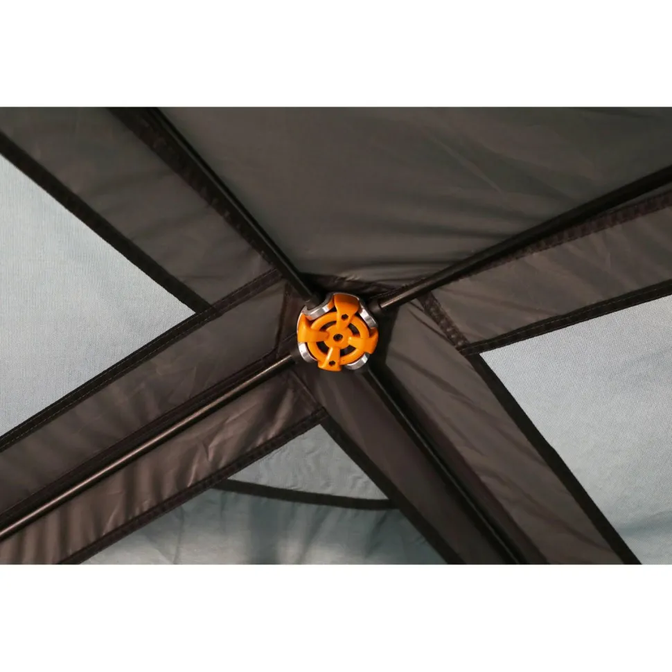 Die Kontruktion lässt sich einfach und schnell aufbauen. Abspannleinen sichern es bei Wind und Wetter. Das Zelt kommt mit wind- und wasserdichtem Vango ProTex daher, das Dich zuverlässig vor widrigen Bedingungen schützt. Zudem ist das Material flammhemmend, damit auch kochen kein Problem darstellt. Im Zelt hast Du eine komfortable Raumhöhe. Dunkle Schlafräume fördern einen tieferen Schlaf.